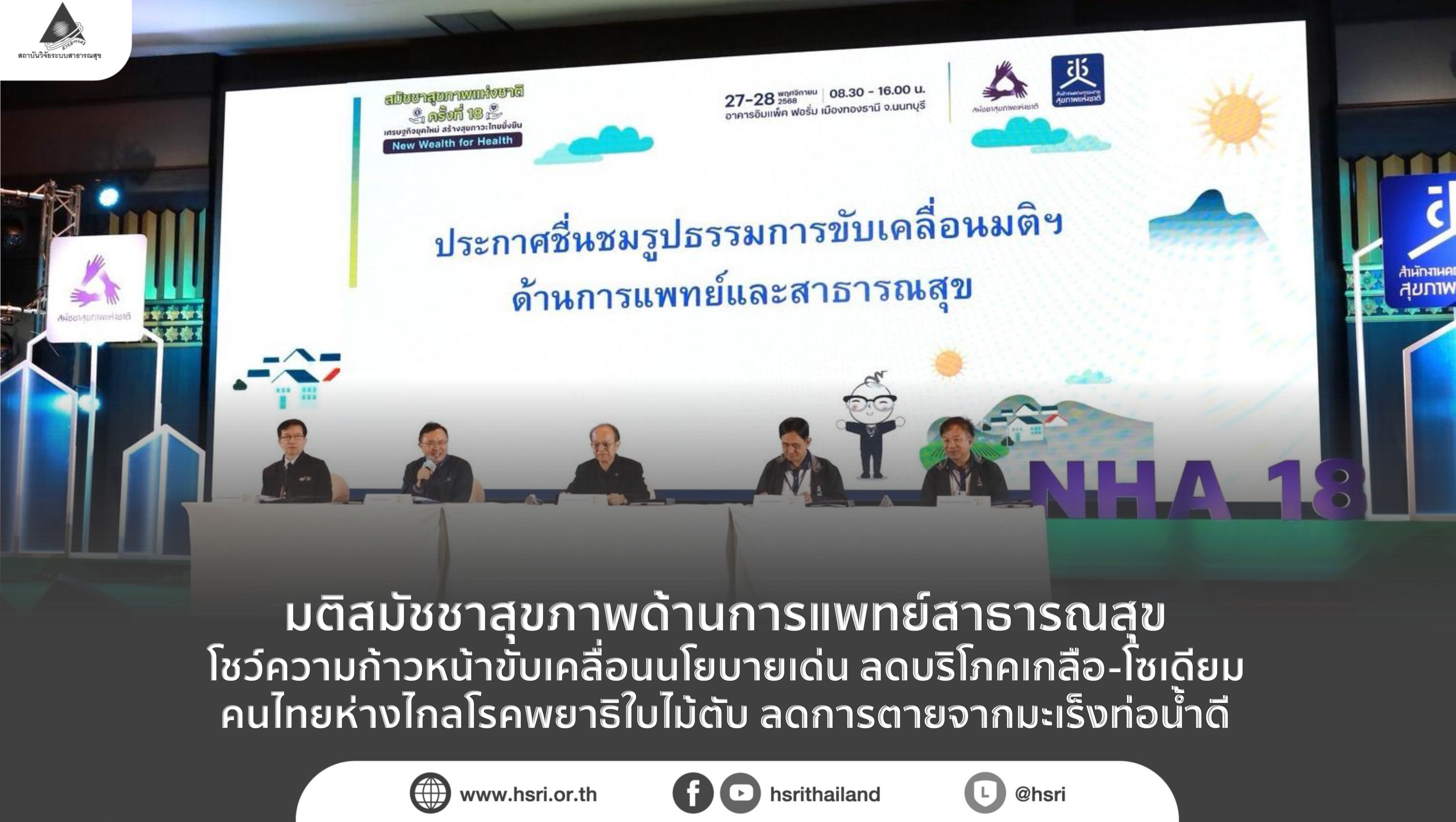 มติสมัชชาสุขภาพด้านการแพทย์สาธารณสุข โชว์ความก้าวหน้าขับเคลื่อนนโยบายเด่น ลดบริโภคเกลือ-โซเดียม คนไทยห่างไกลโรคพยาธิใบไม้ตับ ลดการตายจากมะเร็งท่อน้ำดี