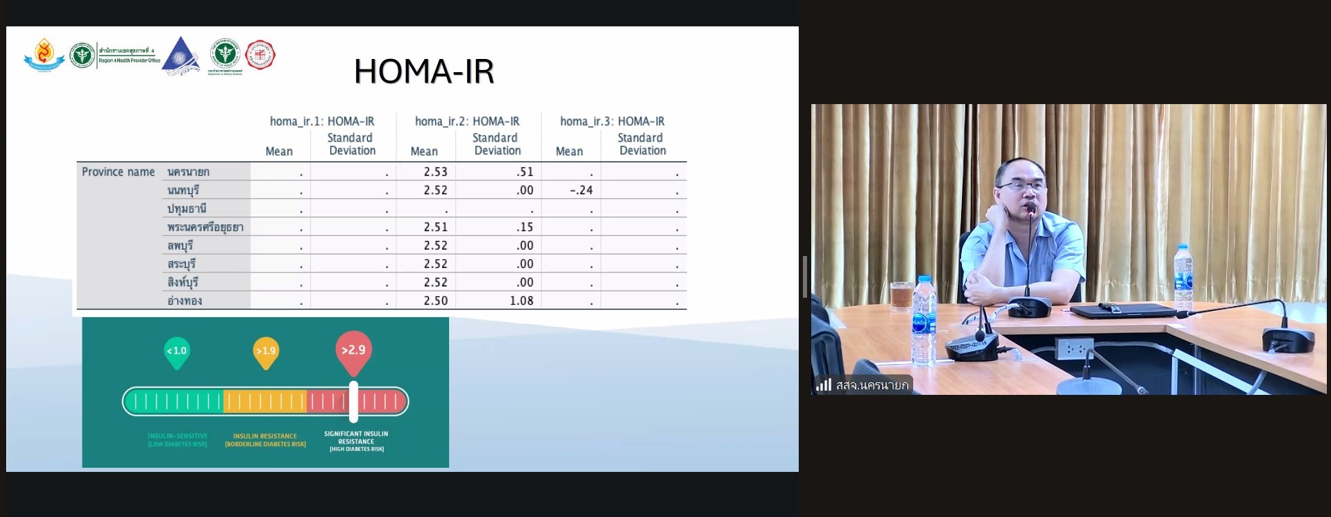 จากข้อมูลและแนวโน้มของผู้ป่วยโรคเบาหวานในประเทศไทย สถาบันวิจัยระบบสาธารณสุข (สวรส.) จึงร่วมกับทีมเขตสุขภาพที่ 4 โดยมีสำนักงานสาธารณสุขจังหวัดนครนายกเป็นทีมวิจัยหลัก เพื่อศึกษา “ประสิทธิผลของเวชศาสตร์วิถีชีวิตเพื่อให้โรคสงบในกลุ่มผู้ป่วยเบาหวานชนิดที่ไม่ต้องการอินซูลิน โดยศึกษาในสถานการณ์จริง” โดยมีวัตถุประสงค์เพื่อประเมินประสิทธิผลของโปรแกรมเวชศาสตร์วิถีชีวิตในการทำให้โรคเบาหวานเข้าสู่ภาวะสงบ (DM Remission) เปรียบเทียบการรักษาแบบมาตรฐานในผู้ป่วยเบาหวานชนิดที่ไม่ต้องใช้อินซูลินในระยะ 6 เดือน และเพื่อวิเคราะห์ต้นทุนที่เกี่ยวข้องกับการรักษาในผู้ป่วยเบาหวานที่ได้รับโปรแกรมเวซศาสตร์วิถีชีวิต เปรียบเทียบกับกลุ่มรักษาแบบมาตรฐาน โดยได้มีการนำเสนอผลการวิจัยเบื้องต้น เพื่อคืนข้อมูลให้กับผู้เกี่ยวข้อง อาทิ สำนักงานหลักประกันสุขภาพแห่งชาติ (สปสช.) ศูนย์วิทยาศาสตร์การแพทย์ สำนักงานสาธารณสุขจังหวัด สำนักงานสาธารณสุขอำเภอ โรงพยาบาลศูนย์ โรงพยาบาลทั่วไป โรงพยาบาลชุมชน โรงพยาบาลส่งเสริมสุขภาพตำบล (รพ.สต.) นักเทคนิคการแพทย์ที่เกี่ยวข้อง ในเขตสุขภาพที่ 4 จำนวนกว่า 100 คน เมื่อวันที่ 10 ต.ค. 2568 ผ่านการประชุมออนไลน์