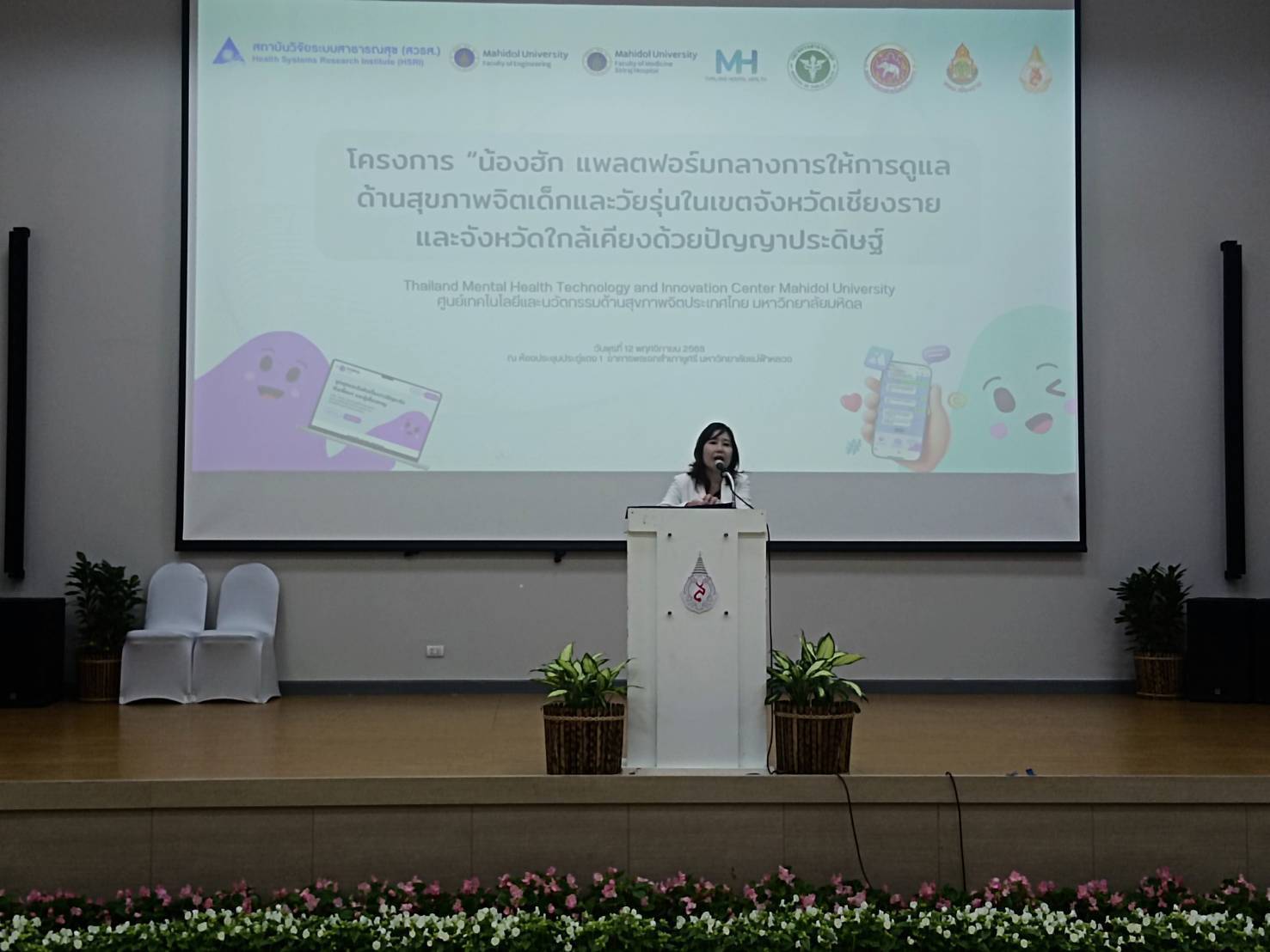 “น้องฮัก” เป็นแพลตฟอร์มกลางการดูแลสุขภาพจิตเด็กและวัยรุ่นอายุ 11–17 ปี ซึ่งพัฒนาโดยความร่วมมือของ ม.มหิดล รพ.เชียงรายประชานุเคราะห์, และเครือข่ายภาคีในพื้นที่ โดยได้รับการสนับสนุนงบประมาณจาก สวรส. แพลตฟอร์มนี้ประกอบด้วย แชทบอท “น้องฮัก” สำหรับพูดคุย ประเมินอารมณ์เบื้องต้น ให้ข้อมูลสุขภาพจิต แจ้งเตือนภาวะเสี่ยง และ“ชุมชนออนไลน์น้องฮัก” พื้นที่แลกเปลี่ยนเรียนรู้เรื่องสุขภาพใจของเยาวชนในบรรยากาศที่ปลอดภัย