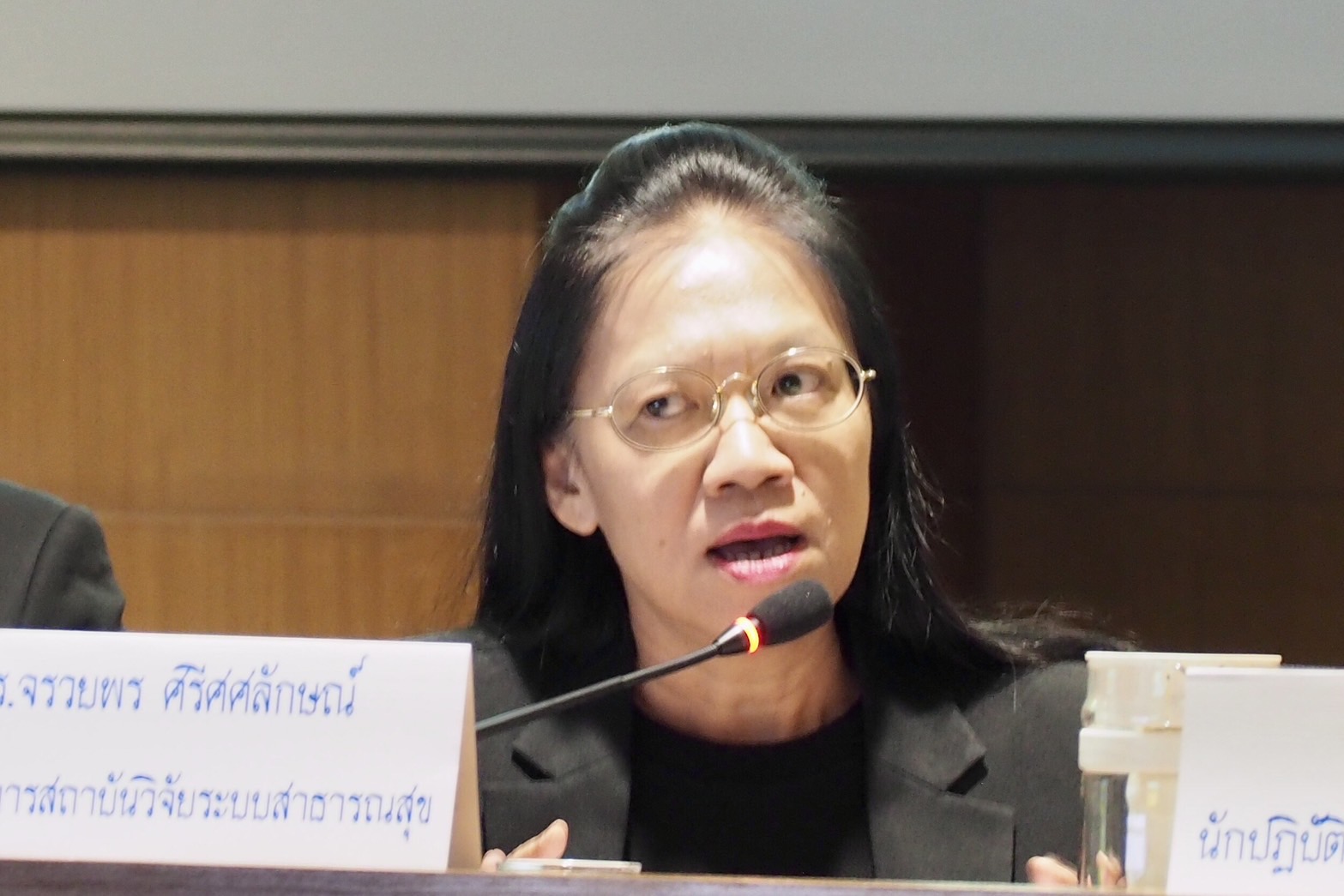 ขณะที่ ผศ.ดร.จรวยพร ศรีศศลักษณ์ กล่าวว่า “สวรส ทำหน้าที่สนับสนุนด้านวิชาการให้กับคณะกรรมการภาคีสานพลังพื้นที่เข้มแข็ง (ภสพ.) และเครือข่ายในโครงการภาคีอาสา 5 จังหวัด ได้แก่ เชียงราย นครสวรรค์ ขอนแก่น ตราด พัทลุง” โดยมีการเลือกประเด็นในการสร้างความเข้มแข็งของภาคประชาสังคมในการแก้ไขปัญหาในจังหวัด เช่น เชียงรายเลือกประเด็นแก้ไขปัญหาสารปนเปื้อนแม่น้ำกก ซึ่ง สวรส. ได้สนับสนุนทุนวิจัยให้กับ ผศ.ดร.กรณ์ หุวะนันทน์ (นิด้า) ในการดำเนินโครงการประเมินผลเชิงพัฒนาคณะกรรมการภาคีสานพลังพื้นที่เข้มแข็งและเครือข่ายอาสาภาคีสานพลังพื้นที่เข้มแข็ง 5 จังหวัด ภายใต้โครงการเสริมสร้างจังหวัดเข้มแข็งโดยใช้พื้นที่เป็นฐานและบูรณาการทุกภาคส่วน โดยต้องการผลลัพธ์เป็นรูปแบบกลไกการขับเคลื่อนของภาคีอาสาและเครือข่ายภาคีสานพลังพื้นที่เข้มแข็งของจังหวัด สำหรับนำไปใช้ขยายผลอย่างเป็นรูปธรรม ซึ่งจำเป็นต้องมีทิศทางของคณะกรรมการภาคีสานพลังพื้นที่เข้มแข็ง (ภสพ.) ที่ชัดเจน เพื่อให้นักวิจัยสามารถดำเนินการตามกรอบวิจัยและวัดผลได้ ซึ่งทางทีมวิจัยได้นำเสนอกรอบวิจัย DE โดยใช้แนวทางการประเมินที่ฝังตัวอยู่ในกระบวนการพัฒนาเพื่อให้ข้อมูลย้อนกลับแก่คณะกรรมการ ภสพ.และพื้นที่ เพื่อช่วยในการตัดสินใจและปรับเปลี่ยนทิศทางของโครงการที่ยังไม่มีรูปแบบที่แน่นอน หรือมีความซับซ้อนและมีการเปลี่ยนแปลงตลอดเวลา และใช้กรอบวิจัย Collaborative Governance ในการกำกับดูแลและการบริหารจัดการ ที่เน้นการร่วมมือกันจากการรวมตัวและการทำงานร่วมกันระหว่างหลายภาคส่วน เช่น ภาครัฐ ภาคเอกชน ภาคประชาสังคม ภาควิชาการ ในการบริหารจัดการหรือขับเคลื่อนประเด็นสาธารณะหรือการพัฒนาพื้นที่