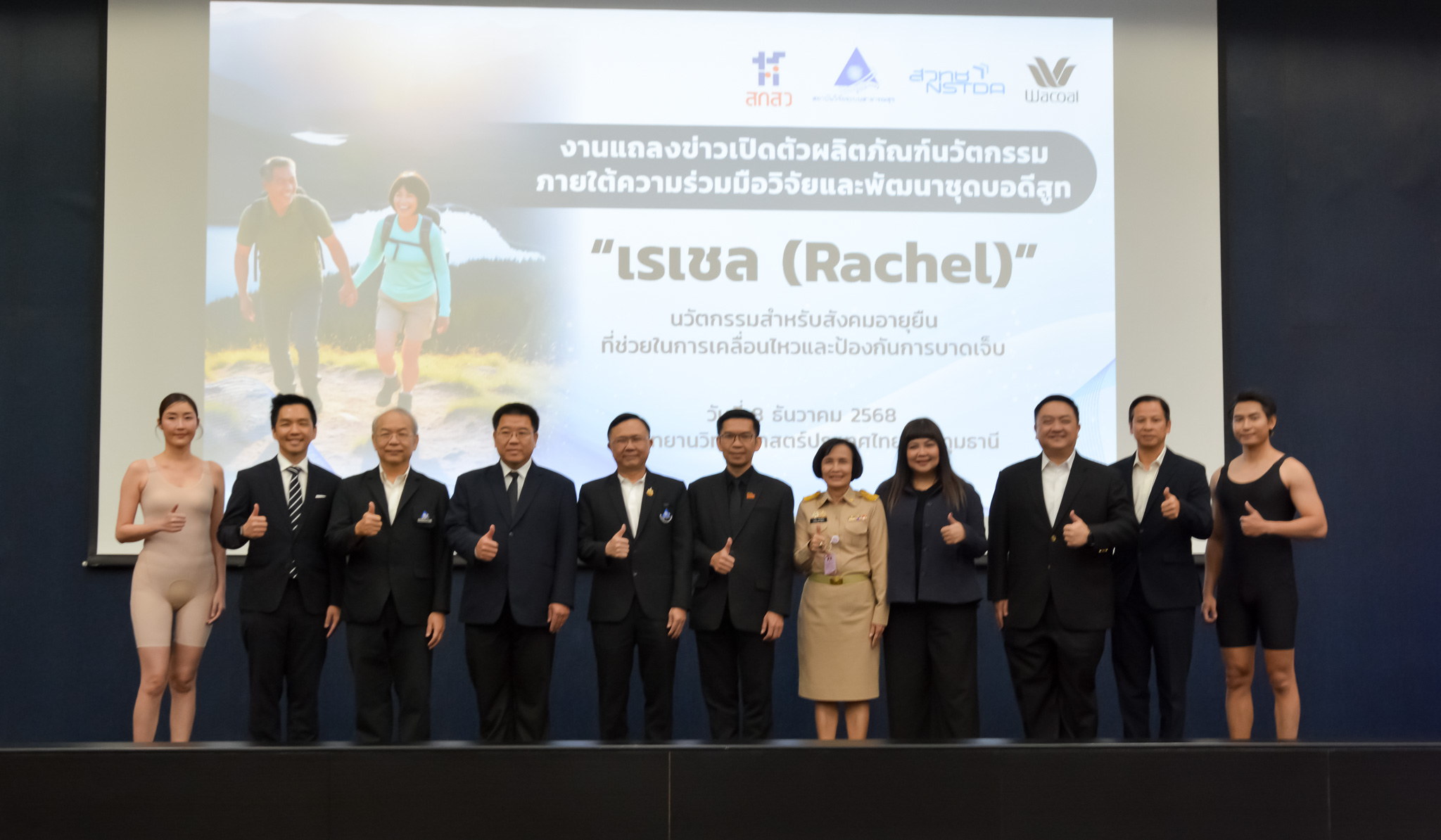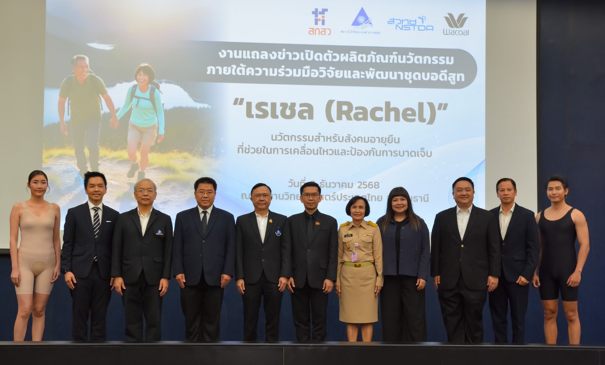 ไทยวาโก้ จำกัด (มหาชน) เปิดตัวนวัตกรรม “เรเชล (Rachel)” ชุดบอดีสูทเพื่อสังคมสูงวัยที่ช่วยเสริมการเคลื่อนไหวและป้องกันการบาดเจ็บ โดยเป็นความร่วมมือถ่ายทอดเทคโนโลยีสู่เชิงพาณิชย์ ด้วยเป้าหมายผลักดันให้เข้าสู่ชุดสิทธิประโยชน์ในระบบหลักประกันสุขภาพแห่งชาติ (บัตรทอง) ในอนาคต ภายในงานมีผู้บริหารจากหน่วยงานต่าง ๆ เข้าร่วม ได้แก่ รศ. ดร.เติมศักดิ์ ศรีคิรินทร์ ผู้อำนวยการเอ็มเทค สวทช. นพ.ศุภกิจ ศิริลักษณ์ ผู้อำนวยการ สวรส. นางวาสนา ทองจันทร์ รองอธิบดีกรมกิจการผู้สูงอายุ นพ.เฉวตสรร นามวาท ผู้อำนวยการสำนักสนับสนุนการพัฒนาระบบสุขภาพ สำนักงานกองทุนสนับสนุนการสร้างเสริมสุขภาพ (สสส.) คุณอินทิรา นาคสกุล ผู้อำนวยการฝ่ายการตลาด บริษัท ไทยวาโก้ จำกัด (มหาชน) และ ดร.ศราวุธ เลิศพลังสันติ