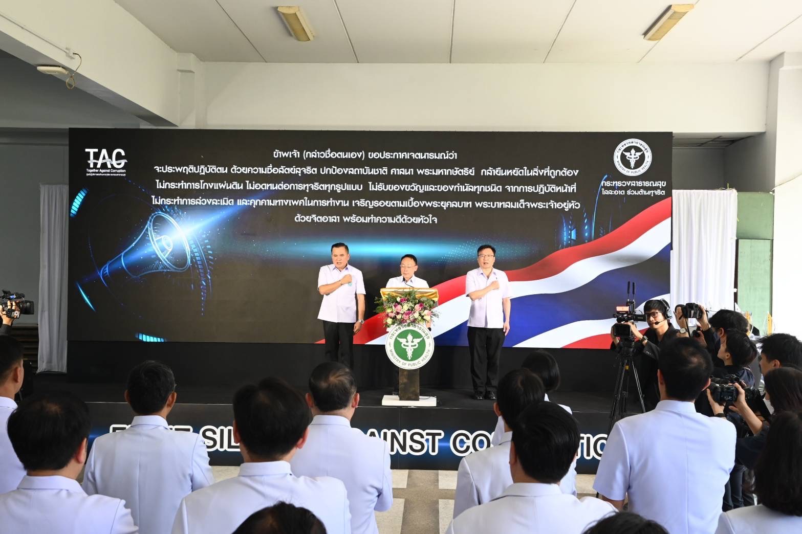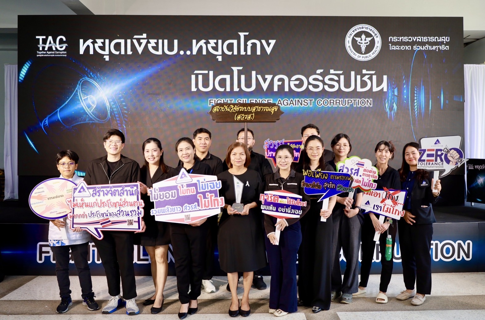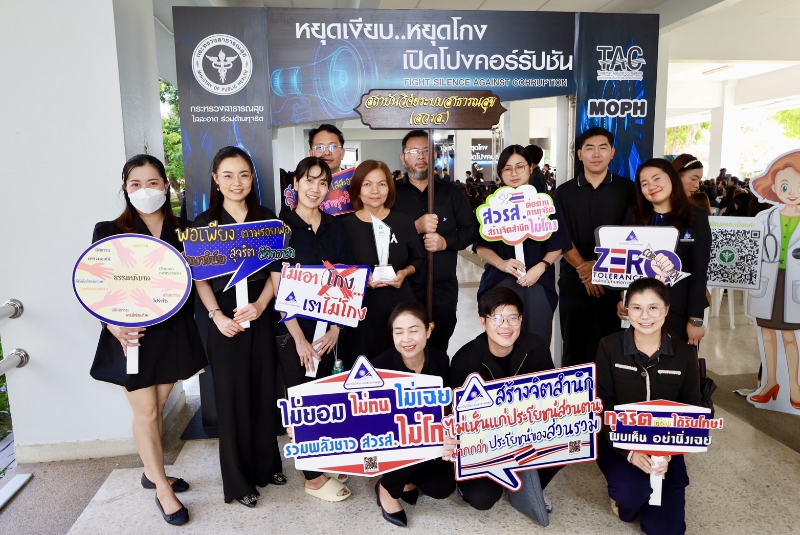 19 ธ.ค.2568 ดร.จุไรรัตน์ พรหมใจ ผู้จัดการงานวิจัย พร้อมด้วย น.ส.อุทุมพร มยาเศรษฐ หัวหน้าฝ่ายเทคโนโลยีสารสนเทศ และเจ้าหน้าที่สถาบันวิจัยระบบสาธารณสุข (สวรส.) ร่วมกิจกรรมประกาศเจตนารมณ์ต่อต้านการทุจริต “หยุดเงียบ หยุดโกง เปิดโปงคอร์รัปชัน” ไม่รับของขวัญและของกำนัลทุกชนิดจากการปฏิบัติหน้าที่ และป้องกันการแสวงหาประโยชน์ทางเพศ การล่วงละเมิดและการคุกคามทางเพศในการทำงาน