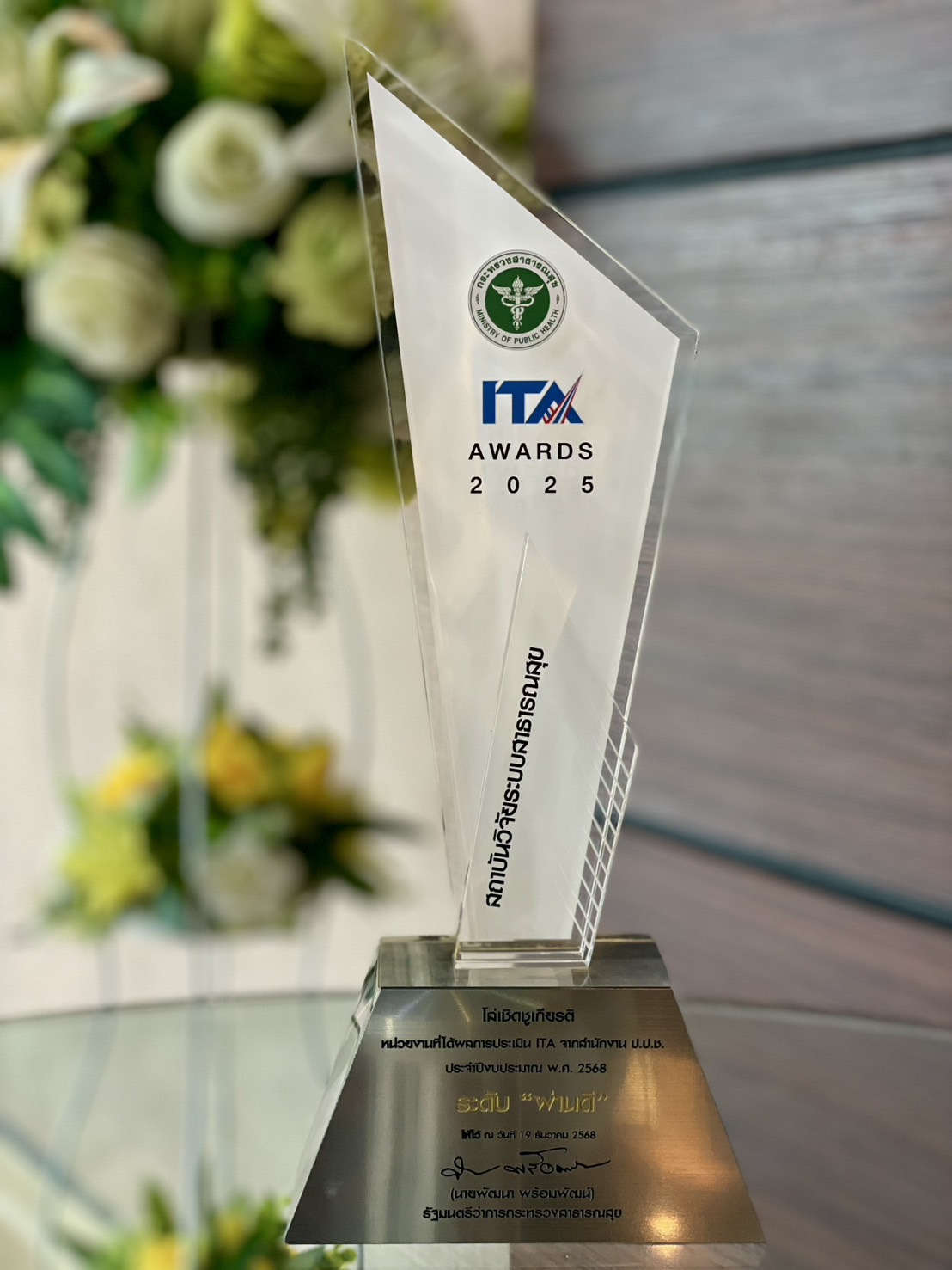 ทั้งนี้ภายในกิจกรรมดังกล่าว สวรส. ยังได้รับโล่เชิดชูเกียรติหน่วยงานที่ได้ผลการประเมิน ITA จากสำนักงานคณะกรรมการป้องกันและปราบปรามการทุจริตแห่งชาติ (ป.ป.ช.) ระดับ "ผ่านดี" ประจำปีงบประมาณ 2568 โดยได้คะแนนรวม 91.77 คะแนน สะท้อนถึงความพยายามและการพัฒนาในการบริหารงานภาครัฐที่มีความโปร่งใสและเป็นไปตามหลักธรรมาภิบาล โดยในปีนี้มีทั้งหมด 9 หน่วยงานที่ได้ผลการประเมินระดับผ่านดี ได้แก่ สถาบันวิจัยระบบสาธารณสุข (สวรส.) องค์การเภสัชกรรม กรมอนามัย สำนักงานปลัดกระทรวงสาธารณสุข กรมการแพทย์แผนไทยและแพทย์ทางเลือก กรมสุขภาพจิต กรมสนับสนุนบริการสุขภาพ สถาบันพระบรมราชชนก และสถาบันการแพทย์ฉุกเฉินแห่งชาติ (สพฉ.) สำหรับงานดังกล่าว จัดโดยกระทรวงสาธารณสุข โดยมี นพ.สมฤกษ์ จึงสมาน ปลัดกระทรวงสาธารณสุข เป็นประธานในพิธี ณ บริเวณโถงชั้น 1 อาคาร 3 ตึกสำนักงานปลัดกระทรวงสาธารณสุข