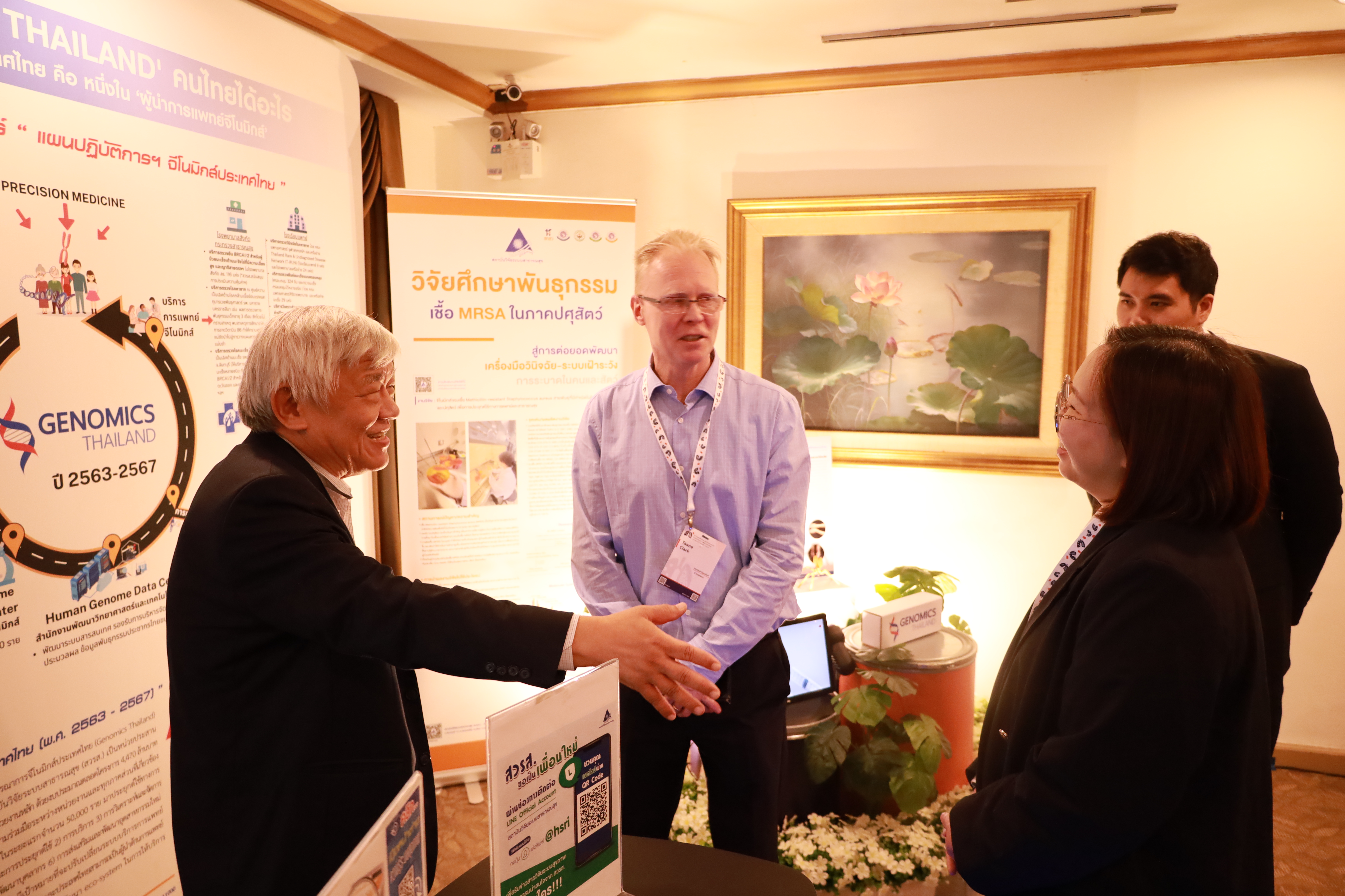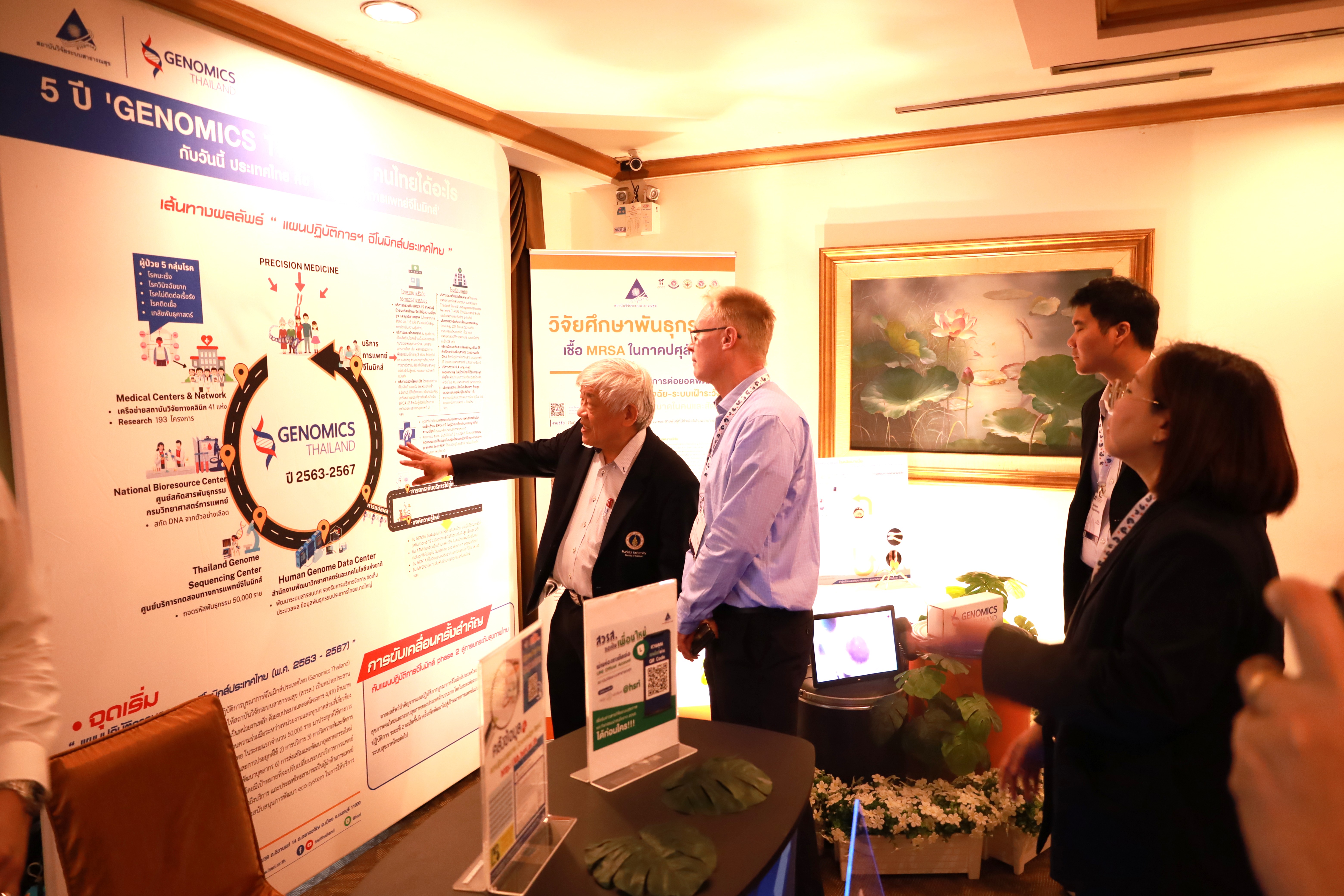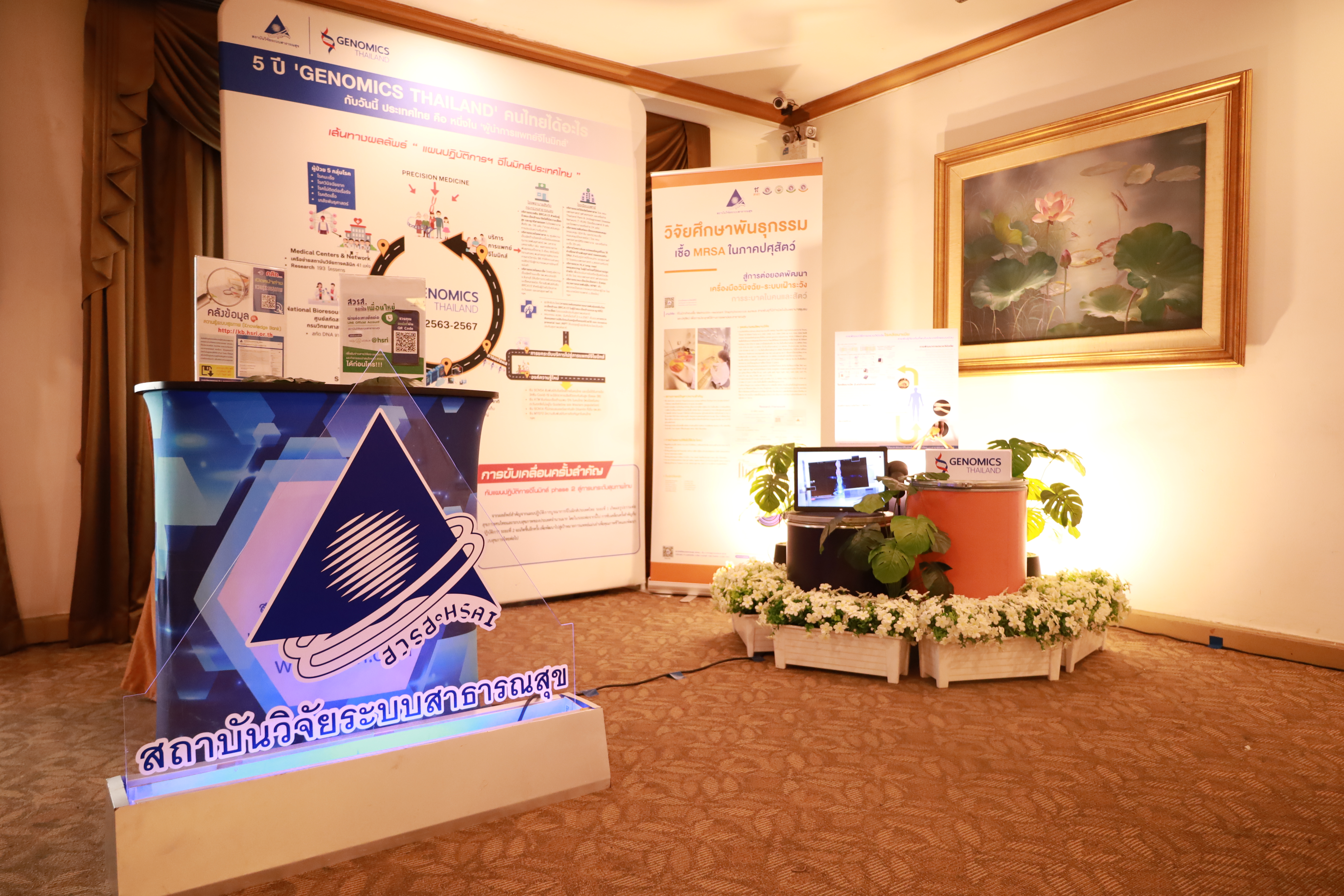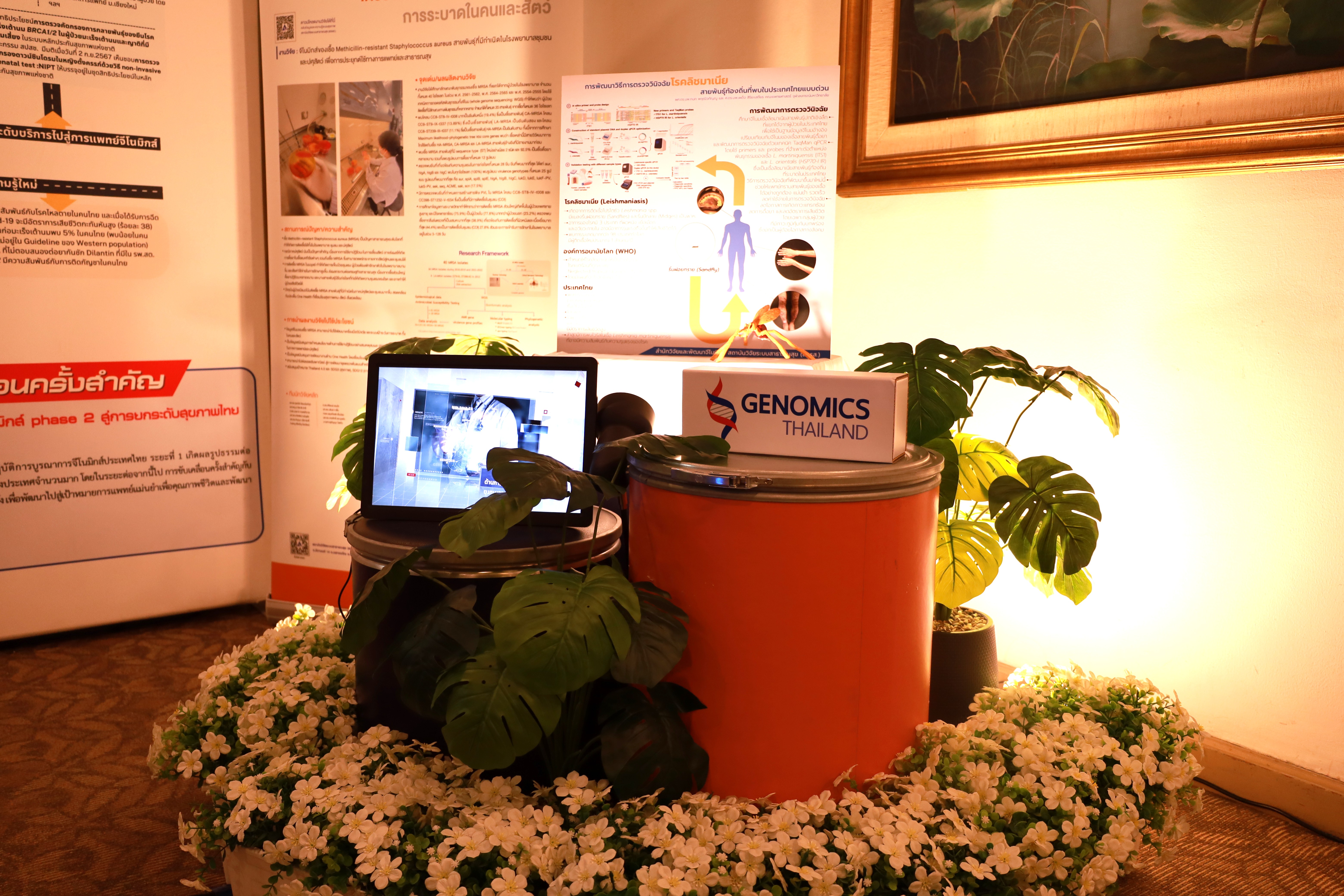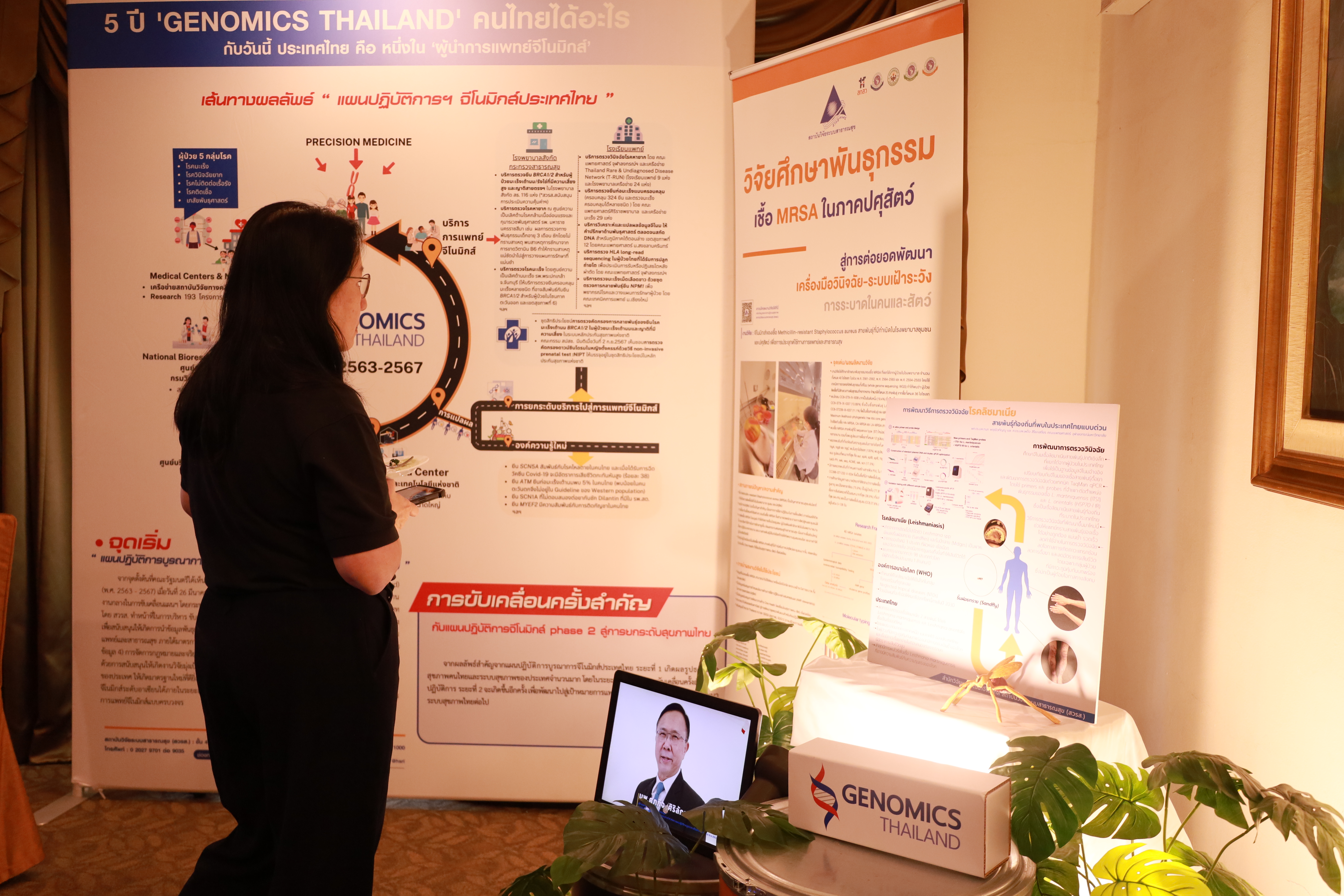🧬สำหรับชุดนิทรรศการในงาน สวรส. ได้ร่วมนำเสนอรูปธรรมความสำเร็จของการขับเคลื่อนแผนปฏิบัติการจีโนมิกส์ประเทศไทยใน 5 ปีที่ผ่านมา, งานวิจัยเรื่องการพัฒนาวิธีการตรวจวินิจฉัยโรคลิชมาเนียสายพันธุ์ท้องถิ่นที่พบในประเทศไทย, การศึกษาพันธุกรรมเชื้อ MRSA ในภาคปศุสัตว์ สู่การต่อยอดพัฒนาเครื่องมือวินิจฉัย ระบบเฝ้าระวังการระบาดในคนและสัตว์.