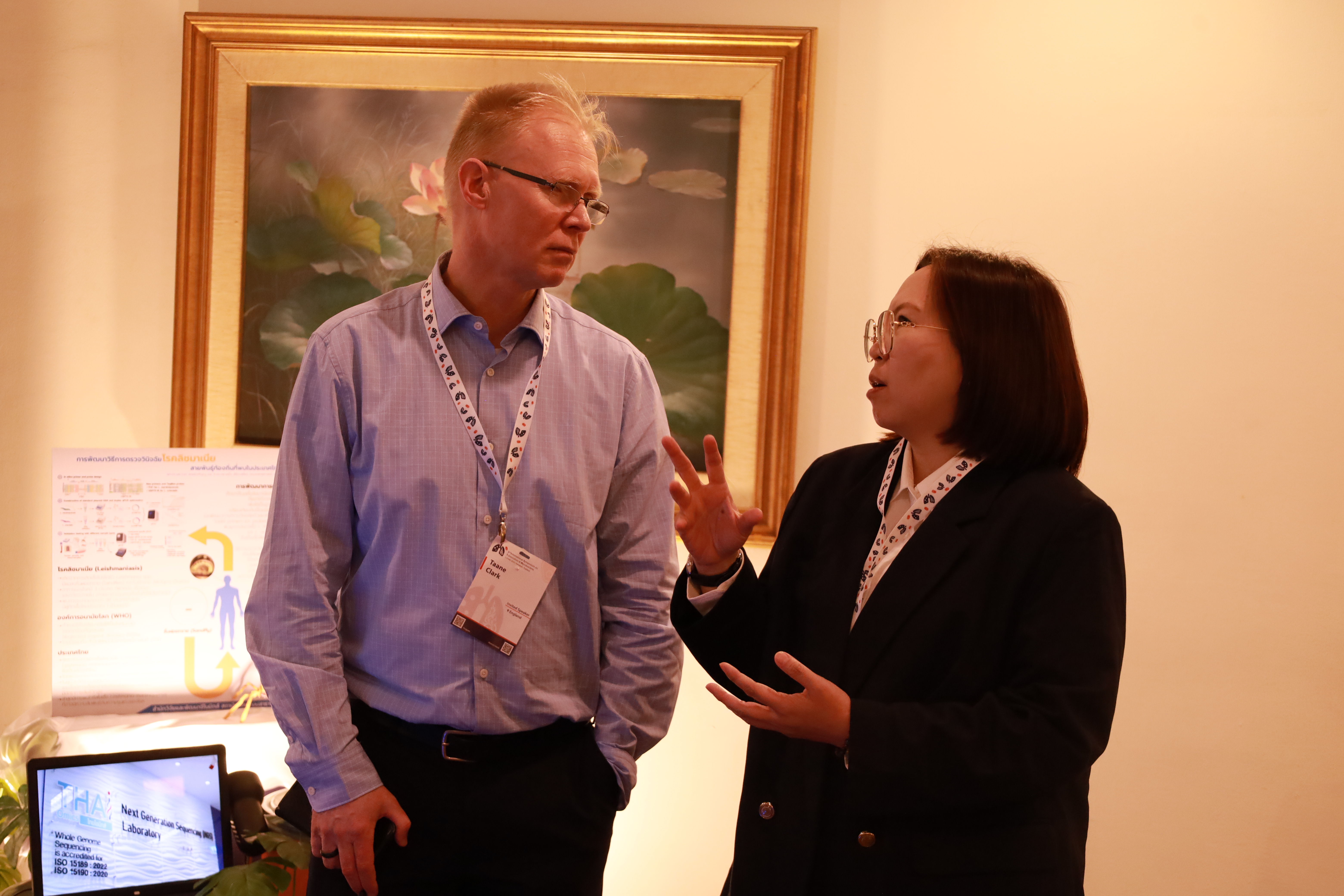 📍 สถาบันวิจัยระบบสาธารณสุข โดยสำนักวิจัยและพัฒนาจีโนมิกส์ ร่วมจัดบูธนิทรรศการในการประชุมวิชาการระดับนานาชาติ ครั้งที่ 3 ว่าด้วยวัณโรคและมัยโคแบคทีเรีย “The 3rd International symposium on Tuberculosis and Mycobacteria: a Multidisciplinary Approach” จัดโดยศูนย์วิจัยจีโนมจุลินทรีย์ (CENMIG) มหาวิทยาลัยมหิดล ระหว่างวันที่ 2-4 กุมภาพันธ์ 2569 ณ โรงแรมอโนมา แกรนด์ กรุงเทพฯ โดยมี ศ.นพ.ประสิทธิ์ ผลิตผลการพิมพ์ คณะวิทยาศาสตร์ ม.มหิดล เป็นประธานคณะทำงาน มีผู้แทนหน่วยงานภาคีจากทั้งภาครัฐและเอกชนเข้าร่วมงานจำนวนกว่า 200 คน โดย ดร.นุสรา สัตย์เพริศพราย ผู้จัดการงานวิจัย และทีมสำนักวิจัยและพัฒนาจีโนมิกส์ เป็นผู้แทน สวรส. เข้าร่วมงานและร่วมจัดนิทรรศการ