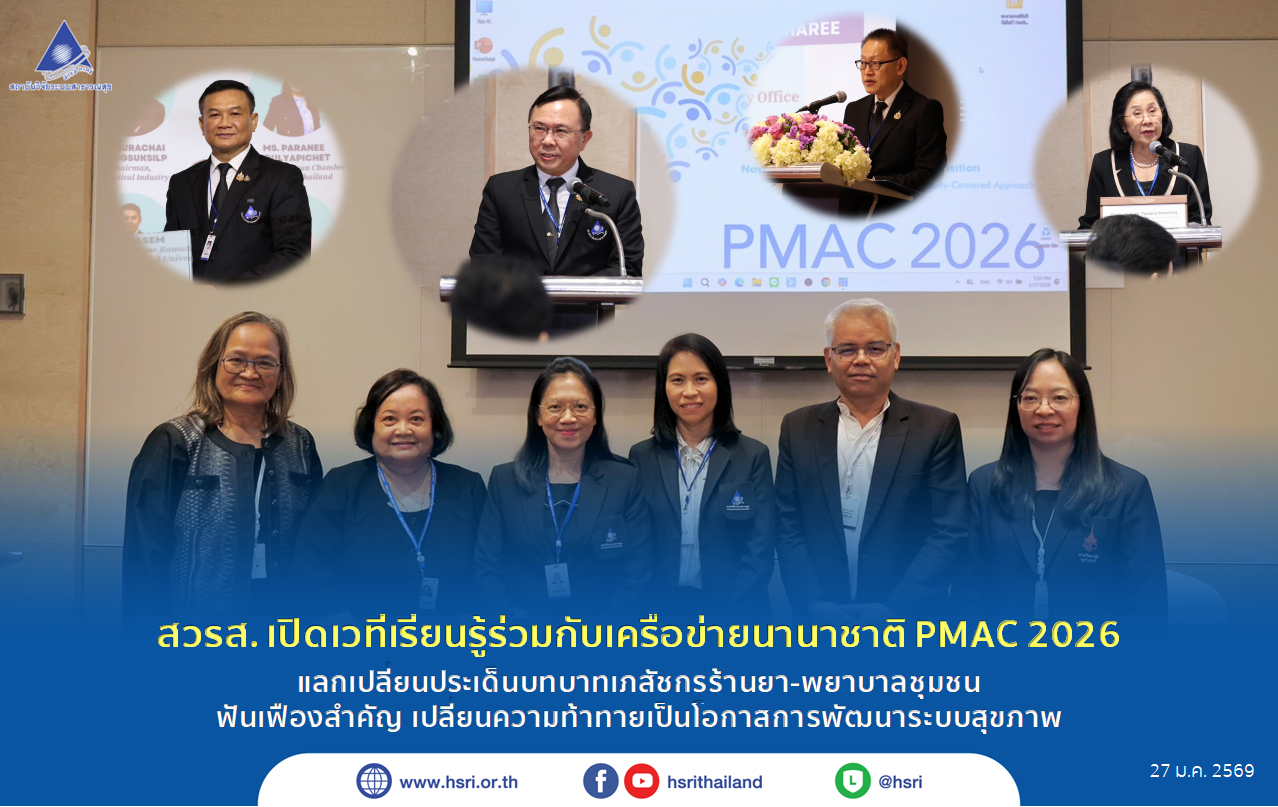 สวรส. เปิดเวทีเรียนรู้ร่วมกับเครือข่ายนานาชาติ PMAC 2026 แลกเปลี่ยนประเด็นบทบาทเภสัชกรร้านยา-พยาบาลชุมชน ฟันเฟืองสำคัญ เปลี่ยนความท้าทายเป็นโอกาสการพัฒนาระบบสุขภาพ