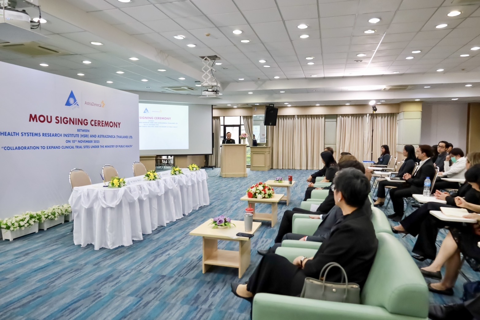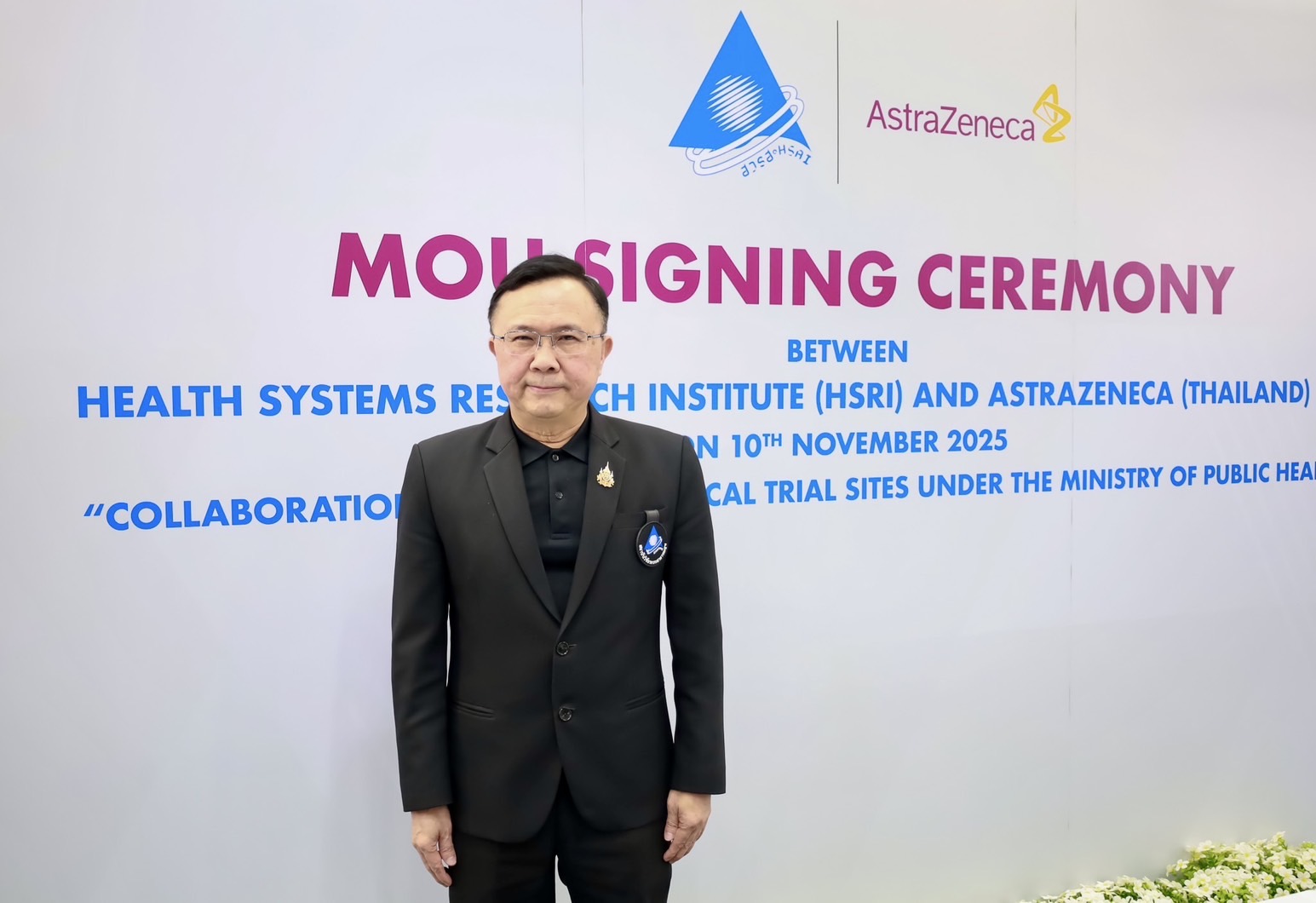 โดยเมื่อวันที่ 10 พฤศจิกายน 2568 - สถาบันวิจัยระบบสาธารณสุข (สวรส.) และบริษัท แอสตร้าเซนเนก้า (ประเทศไทย) จำกัด ได้ร่วมลงนามบันทึกข้อตกลงความร่วมมือระหว่างภาครัฐและเอกชน เพื่อขยายศูนย์วิจัยทางคลินิกภายใต้สังกัดกระทรวงสาธารณสุข โดยมี นพ.ศุภกิจ ศิริลักษณ์ ผู้อำนวยการสถาบันวิจัยระบบสาธารณสุข ลงนามร่วมกับ นายโรมัน รามอส ประธานบริษัทประจำประเทศไทย บริษัท แอสตร้าเซนเนก้า (ประเทศไทย) จำกัด และ นายเบน มอร์ลี่ย์ ที่ปรึกษาและผู้อำนวยการแผนกธุรกิจและการค้า สถานเอกอัครราชทูตอังกฤษประจำประเทศไทย ร่วมเป็นสักขีพยาน ณ ห้องประชุมสานใจ 1/1 ชั้น 6 อาคารสุขภาพแห่งชาติ