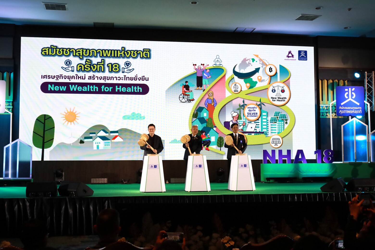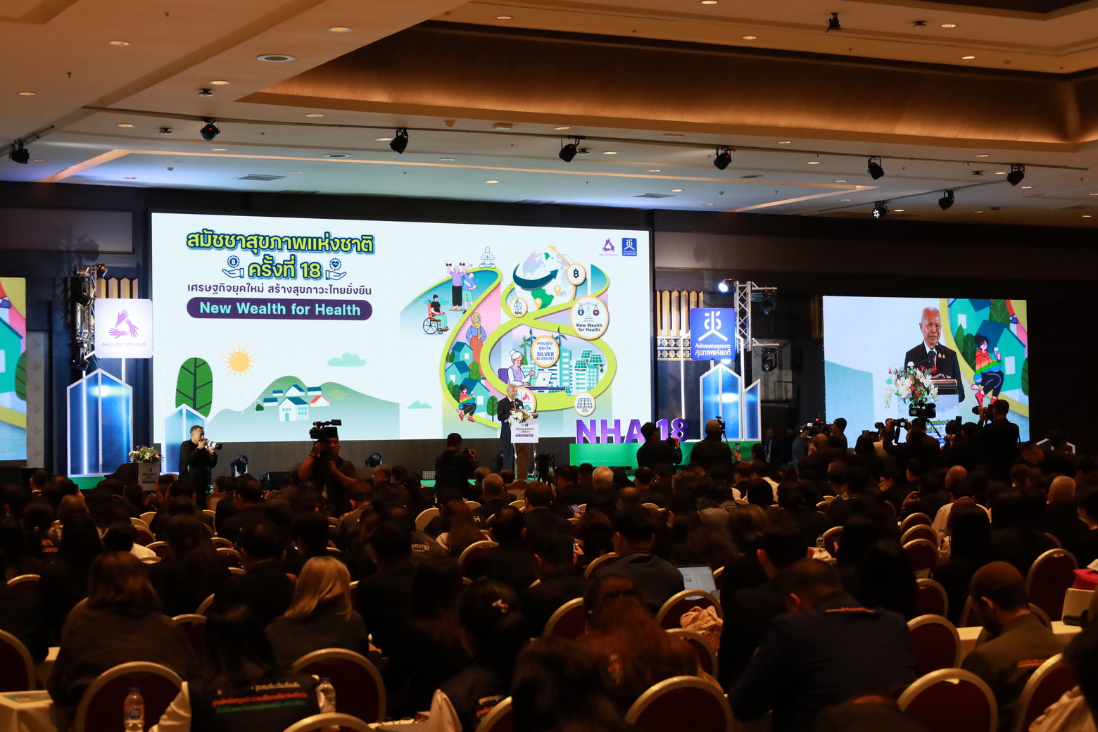 27 พฤศจิกายน 68 : สถาบันวิจัยระบบสาธารณสุข นำโดย นพ.ศุภกิจ ศิริลักษณ์ ผอ.สวรส. ร่วมพิธีเปิดงานสมัชชาสุขภาพแห่งชาติ ครั้งที่ 18 พ.ศ 2568 ภายใต้หัวข้อหลัก "เศรษฐกิจยุคใหม่ สร้างสุขภาวะไทยยั่งยืน" โดยมีพิธีมอบรางวัลแก่หน่วยงานและองค์กรที่ขับเคลื่อนนโยบายสาธารณะแบบมีส่วนร่วม สถาบันวิจัยระบบสาธารณสุข ได้รับรางวัลประกาศเกียรติคุณเชิดชูเกียรติสำหรับการขับเคลื่อนมติสัมมัชชาสุขภาพแห่งชาติให้สัมฤทธิ์ผลเป็นที่ประจักษ์ และเป็นไปตามกระบวนการนโยบายสาธารณะอย่างเป็นระบบ สวรส.ได้ขับเคลื่อนมติสมัชชาสุขภาพแห่งชาติครั้งที่ 1 การเข้าถึงยาถ้วนหน้าของประชากรไทยจนเกิดผลเป็นรูปธรรม, ครั้งที่ 5 ประสงค์กับการพัฒนาสุขภาวะจนเกิดผลเป็นรูปธรรม, ครั้งที่ 7 การกำจัดปัญหาพยาธิใบไม้ตับและมะเร็งท่อน้ำดีในประชาชนจนเกิดผลเป็นรูปประธรรม และครั้งที่ 12 การจัดการเชิงระบบสู่ประเทศใช้ยาอย่างสมเหตุผลโดยชุมชนเป็นศูนย์กลางจนเกิดผลเป็นรูปธรรม