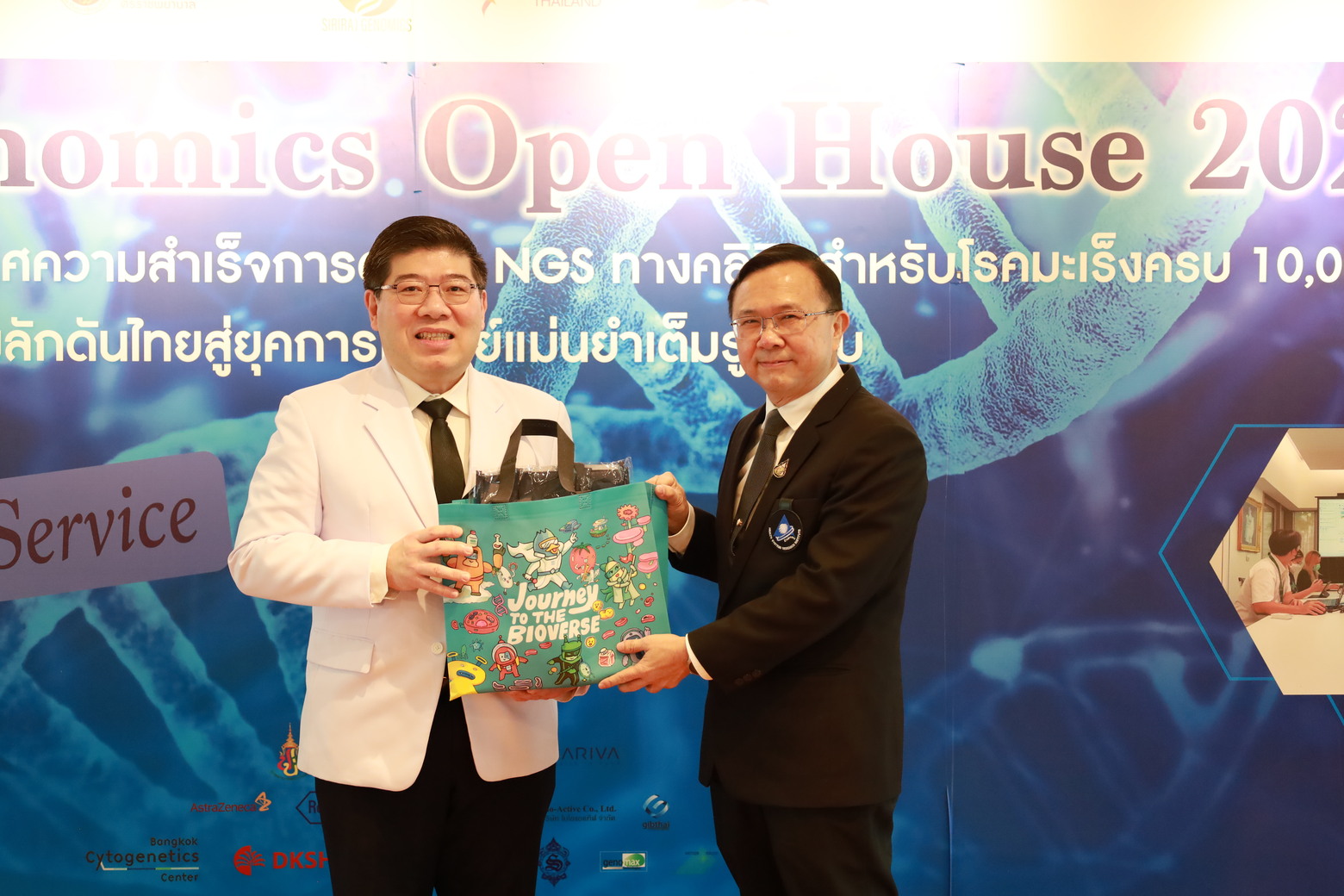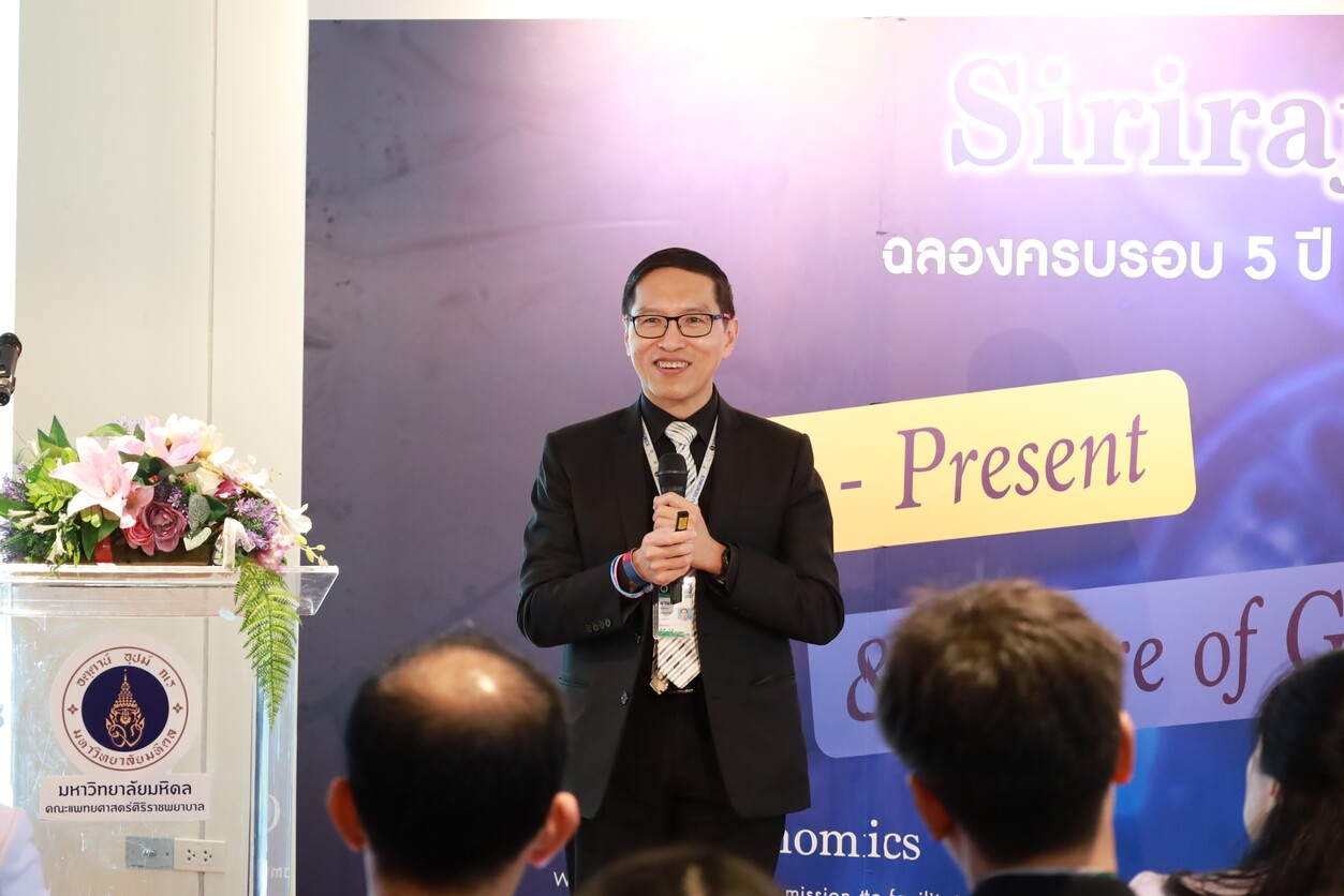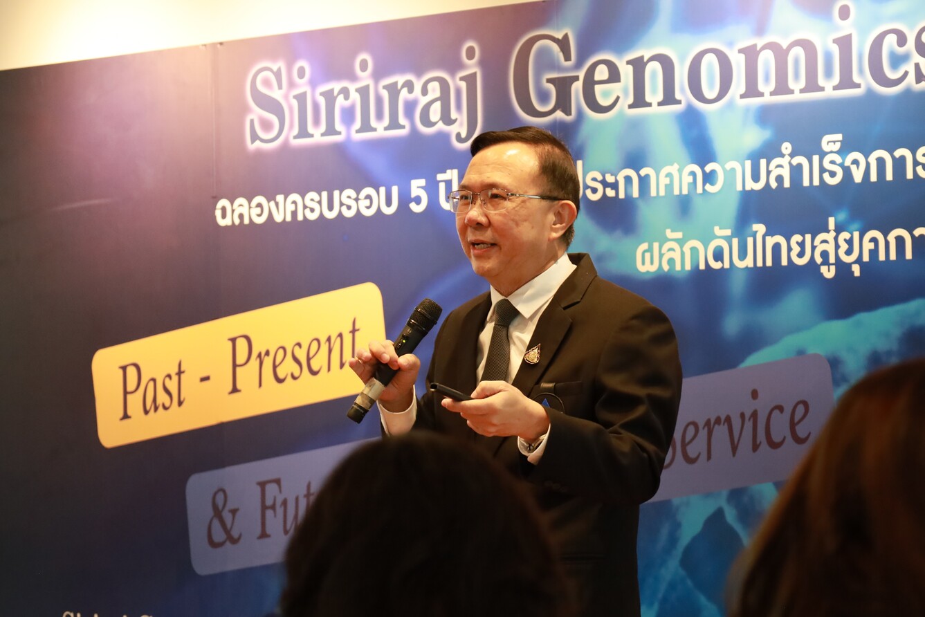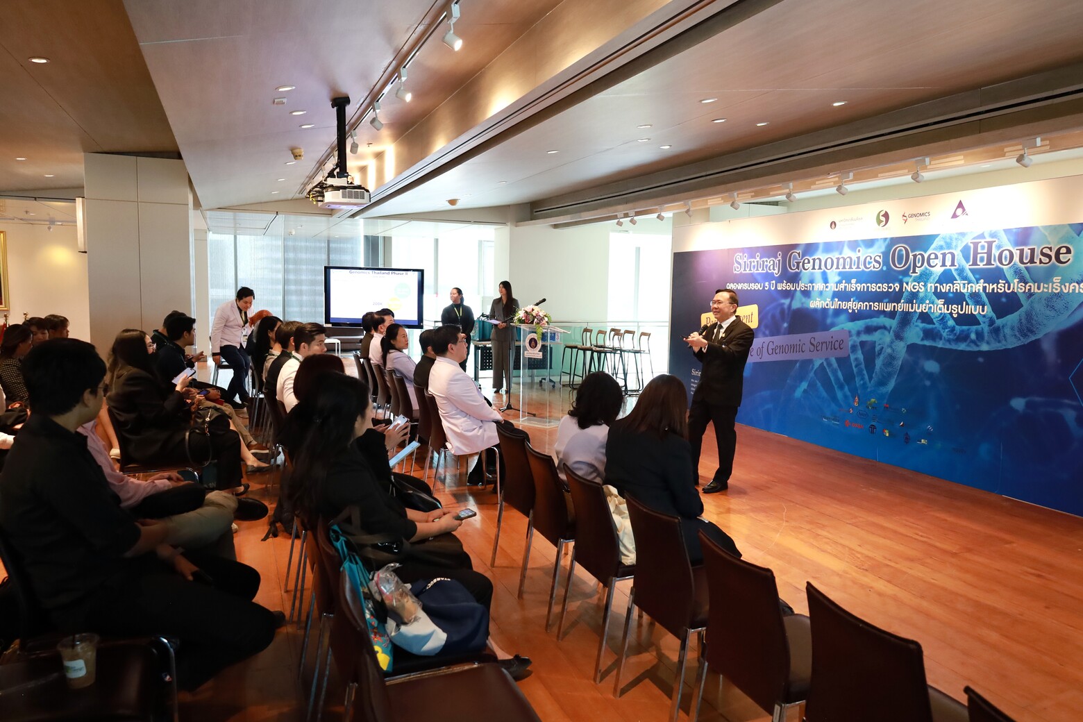 ศ.ดร.นพ.ยงยุทธ ศิริวัฒนอักษร ผู้อำนวยการโรงพยาบาลศิริราช เป็นประธานพิธีเปิดงาน Siriraj Genomics Open House 2025 กล่าวว่า ศูนย์จีโนมิกส์ศิริราช เป็นหน่วยงานสำคัญที่คณะแพทยศาสตร์ศิริราชพยาบาล ให้การสนับสนุน ถูกจัดตั้งขึ้นในปี 2563 ด้วยจุดประสงค์เพื่อรวมการวิจัย การเรียนการสอน และการให้บริการด้วยเทคโนโลยีจีโนม (genome technology) เข้าด้วยกันในหน่วยงานเดียว ทำหน้าที่ขับเคลื่อนการแพทย์จีโนมิกส์และการแพทย์แม่นยำทั้งภายในและภายนอกคณะฯ และเป็นตัวแทนของคณะฯ ในการประสานงานโครงการจีโนมิกส์ประเทศไทย เพื่อผลักดันให้ไทยก้าวเป็นผู้นำของการแพทย์จีโนมิกส์ในระดับภูมิภาคอาเซียน การให้บริการตรวจชุดยีนมะเร็งทางคลินิกครบ 10,000 ราย ถือเป็นหลักฐานสำคัญที่ยืนยันว่า ประเทศไทยมีศักยภาพและมีความพร้อมในการขับเคลื่อนการแพทย์จีโนมิกส์และการแพทย์แม่นยำ มีความสามารถในการให้บริการเทคโนโลยีระดับสูงได้เองโดยไม่ต้องพึ่งพาบริการจากต่างประเทศ