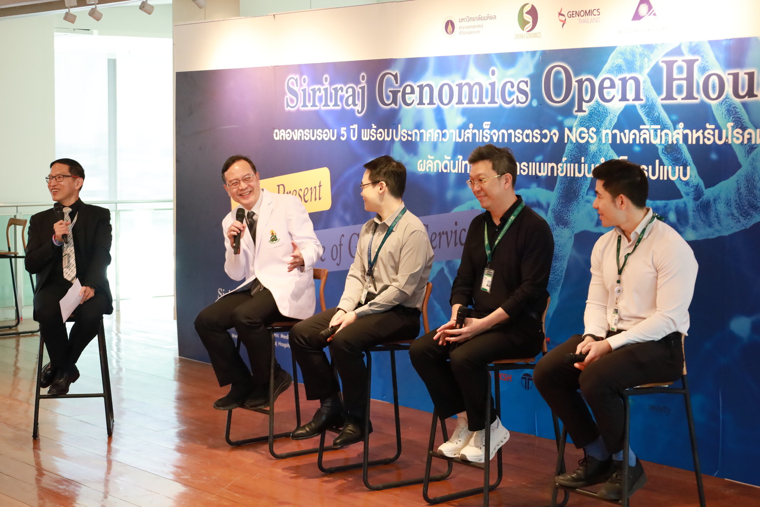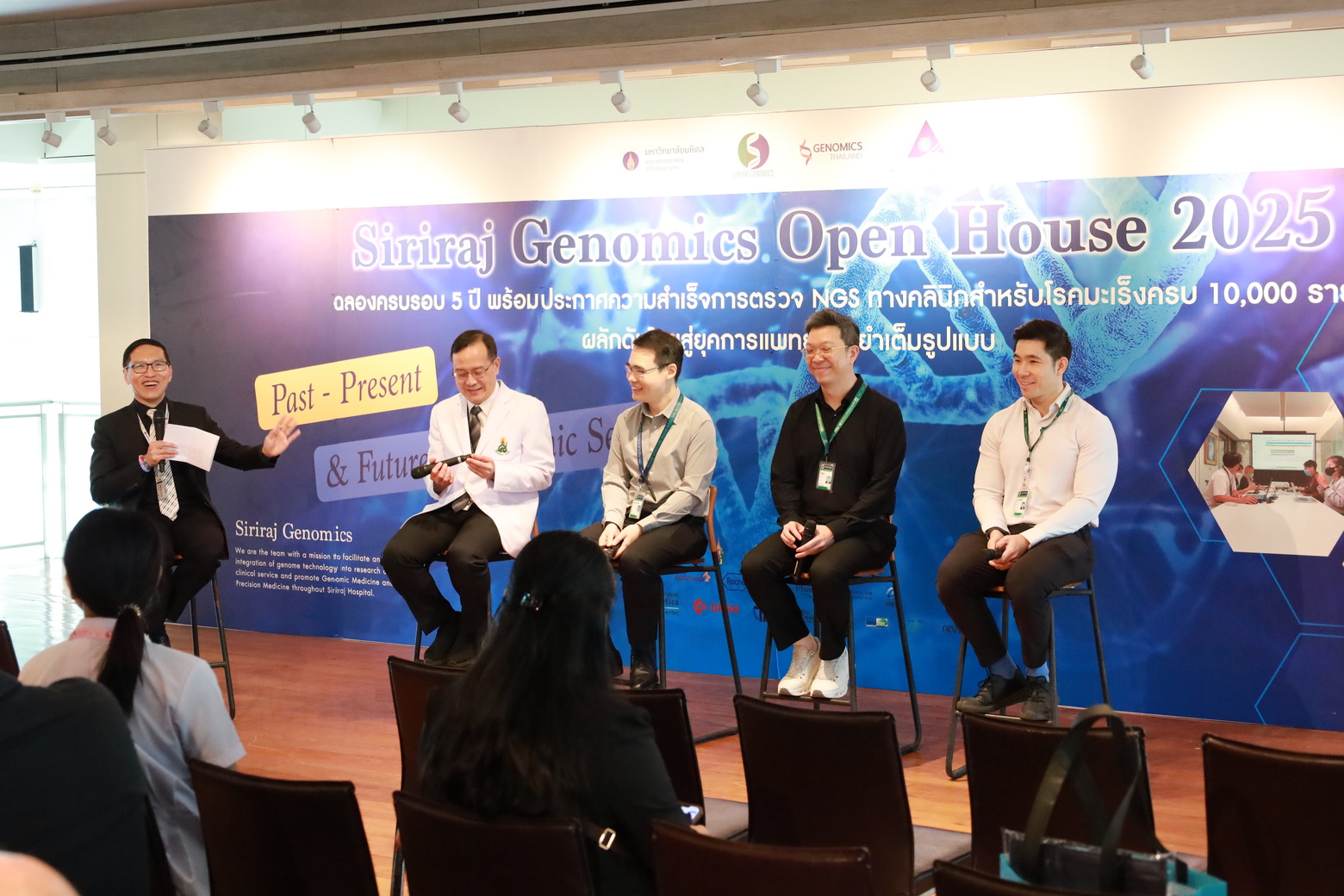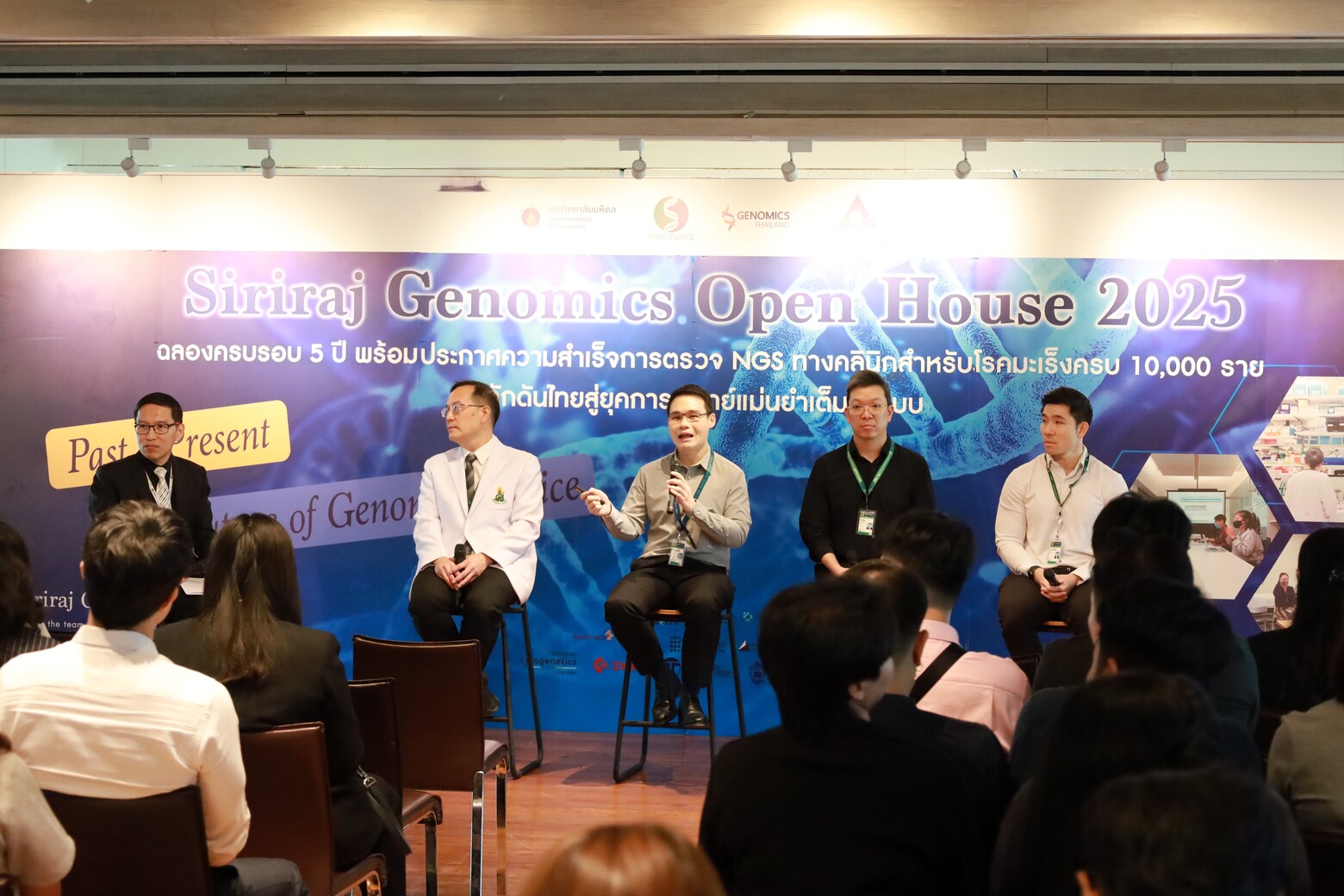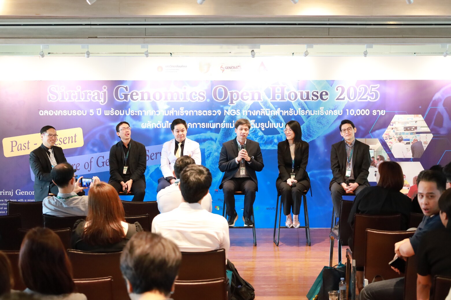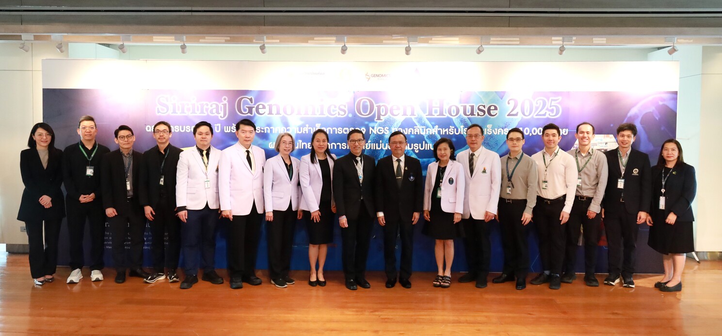 เมื่อวันที่ 4 ธันวาคม 2568 คณะแพทยศาสตร์ศิริราชพยาบาลจัดงาน “Siriraj Genomics Open House 2025” ณ โถงชั้น 12 อาคารศูนย์วิจัยการแพทย์ศิริราช (SiMR) เพื่อฉลองครบรอบ 5 ปี และศูนย์ฯ ยังบรรลุหมุดหมายสำคัญในการให้บริการตรวจทางจีโนมิกส์สำหรับโรคมะเร็ง หรือ Next Generation Sequencing (NGS) cancer panel ครบ 10,000 ราย ตอกย้ำความเป็นผู้นำด้านการแพทย์จีโนมิกส์ของ ศูนย์จีโนมิกส์ศิริราช (Siriraj Genomics) ในการขับเคลื่อนการวิจัย การพัฒนาเทคโนโลยีการถอดรหัสพันธุกรรม และการให้บริการตรวจจีโนมิกส์ทางคลินิกในประเทศไทยอย่างครบวงจรที่ช่วยให้ประชาชนเข้าถึงเทคโนโลยีทางการแพทย์ระดับสากล ลดการพึ่งพาการส่งตรวจยังต่างประเทศอย่างมีนัยสำคัญ และลดค่าใช้จ่ายด้านการแพทย์ของประเทศ