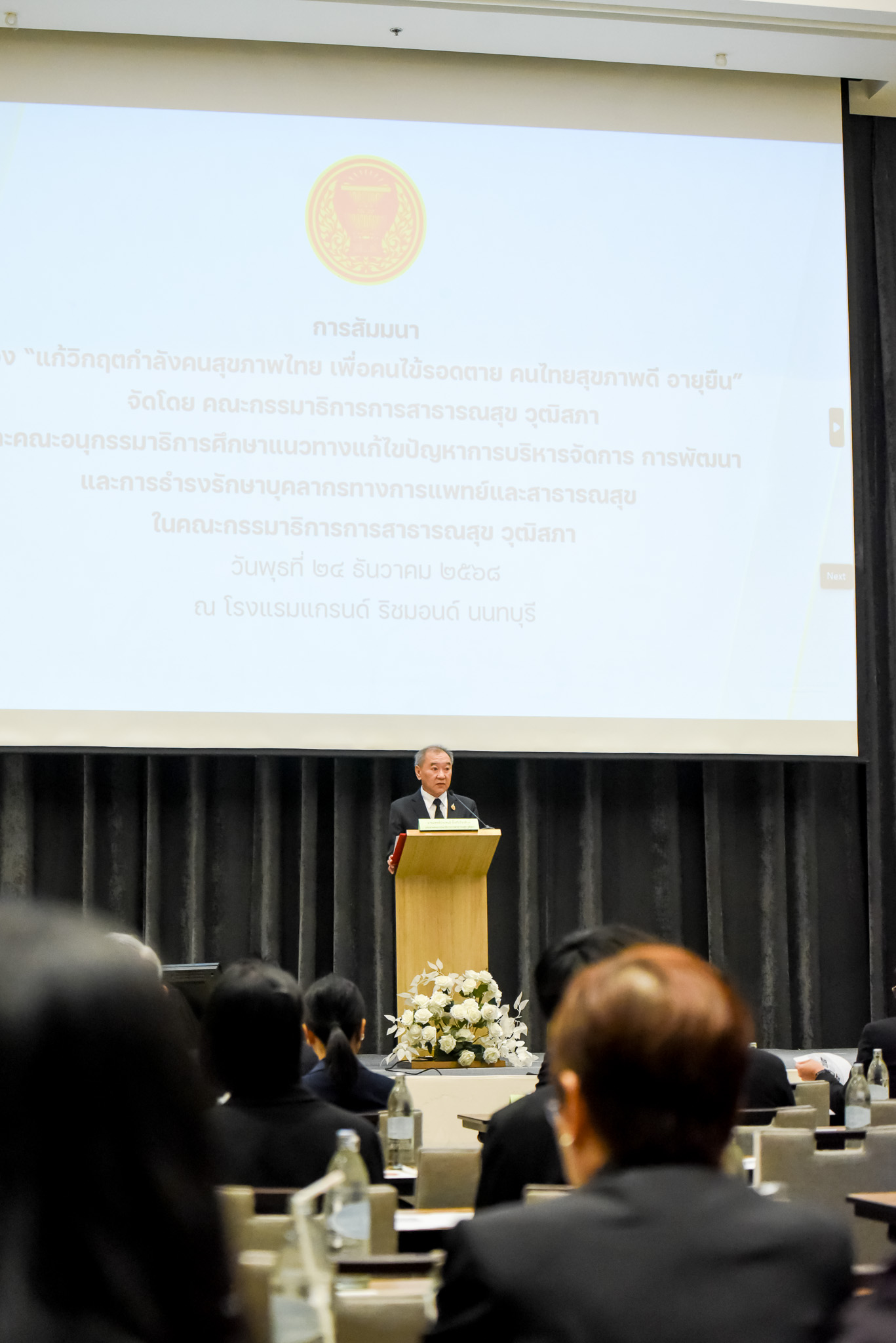 โดยระบุถึงความท้าทายที่ระบบสุขภาพไทยต้องเผชิญ ทั้งสังคมสูงวัยที่เพิ่มขึ้น จำนวนผู้ป่วยที่มากขึ้น