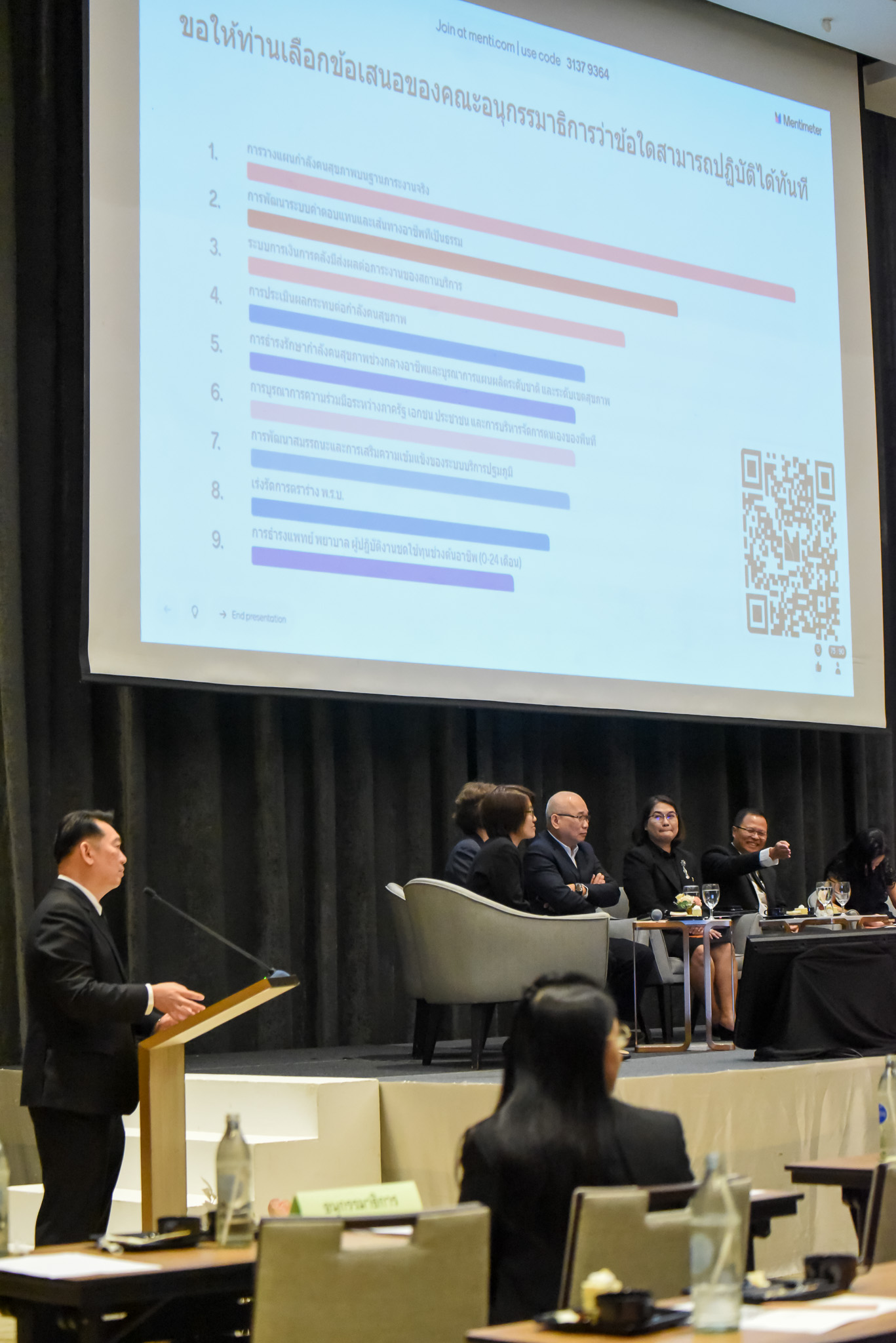 นอกจากนี้ ยังมีการนำเสนอ 9 ข้อเสนอเชิงนโยบาย ต่อผู้เข้าร่วมสัมมนา เพื่อพิจารณาและจัดลำดับความสำคัญ (Ranking) ซึ่งข้อเสนอเหล่านี้ครอบคลุมตั้งแต่การวางแผนกำลังคนบนฐานภาระงานจริง