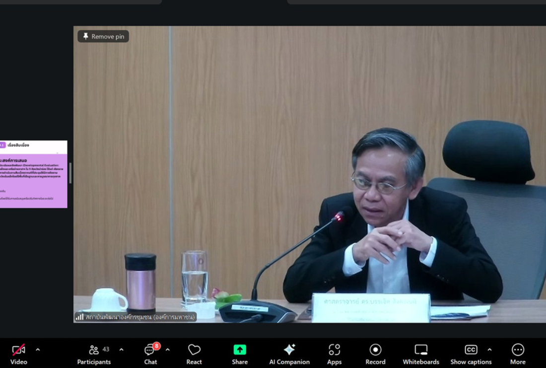 เมื่อวันที่ 16 กุมภาพันธ์ 2569 ได้มีการประชุมคณะกรรมการภาคีสานพลังพื้นที่เข้มแข็ง (ภสพ.) ณ สถาบันพัฒนาองค์กรชุมชน (องค์การมหาชน) โดยมี ศ.ดร.บรรเจิด สิงคะเนติ เป็นประธานการประชุม ได้ให้ความสำคัญกับการประเมินผลการดำเนินงานของ ภสพ. โดยเฉพาะกลไกสำคัญที่จะช่วยให้เกิดการเรียนรู้และนำข้อมูลกลับมาพัฒนาการดำเนินงานให้ตรงจุด โดยมีวาระการประชุมเกี่ยวกับการรายงานความก้าวหน้าการดำเนินโครงการประเมินผลเชิงพัฒนาของ คณะกรรมการภาคีสานพลังพื้นที่เข้มแข็งและเครือข่ายอาสาฯ ใน 5 จังหวัดนำร่อง ได้แก่ เชียงราย พัทลุง นครสวรรค์ ตราด และ ขอนแก่น ซึ่งเป็นการดำเนินงาน สืบเนื่องจากมติที่ประชุมให้มีการติดตาม ประเมินผล และถอดบทเรียนการขับเคลื่อนจังหวัดเข้มแข็ง โดยใช้พื้นที่เป็นฐานและการบูรณาการทุกภาคส่วน