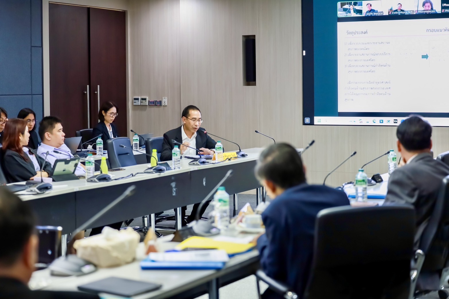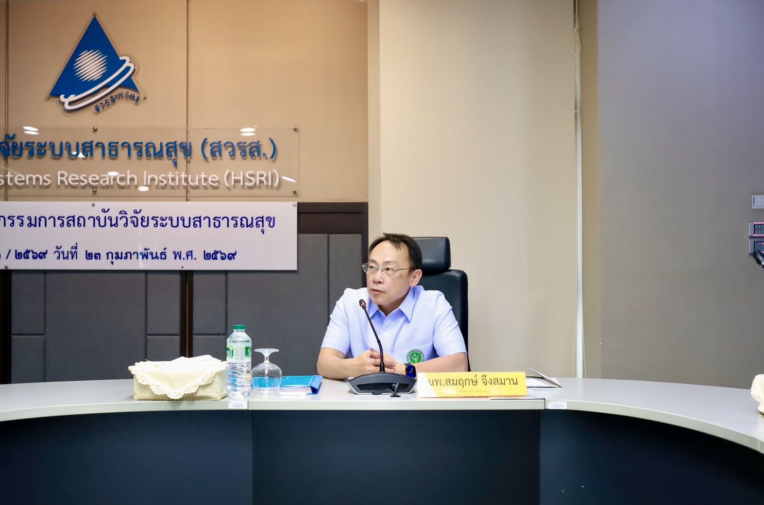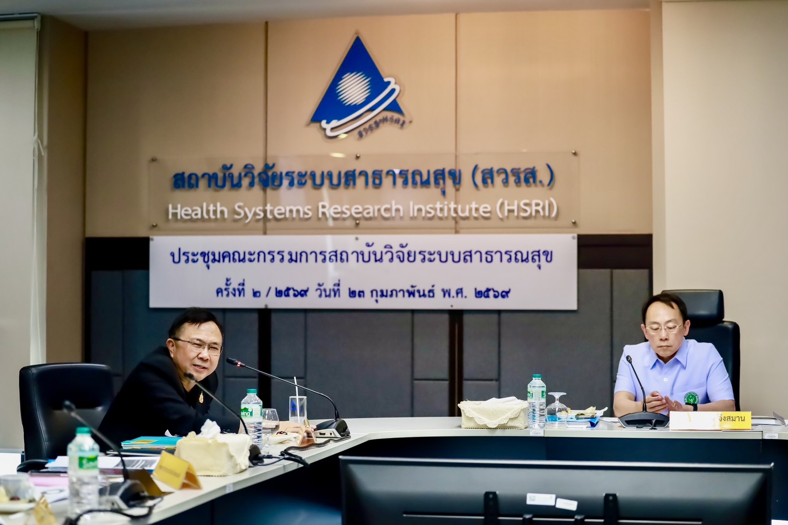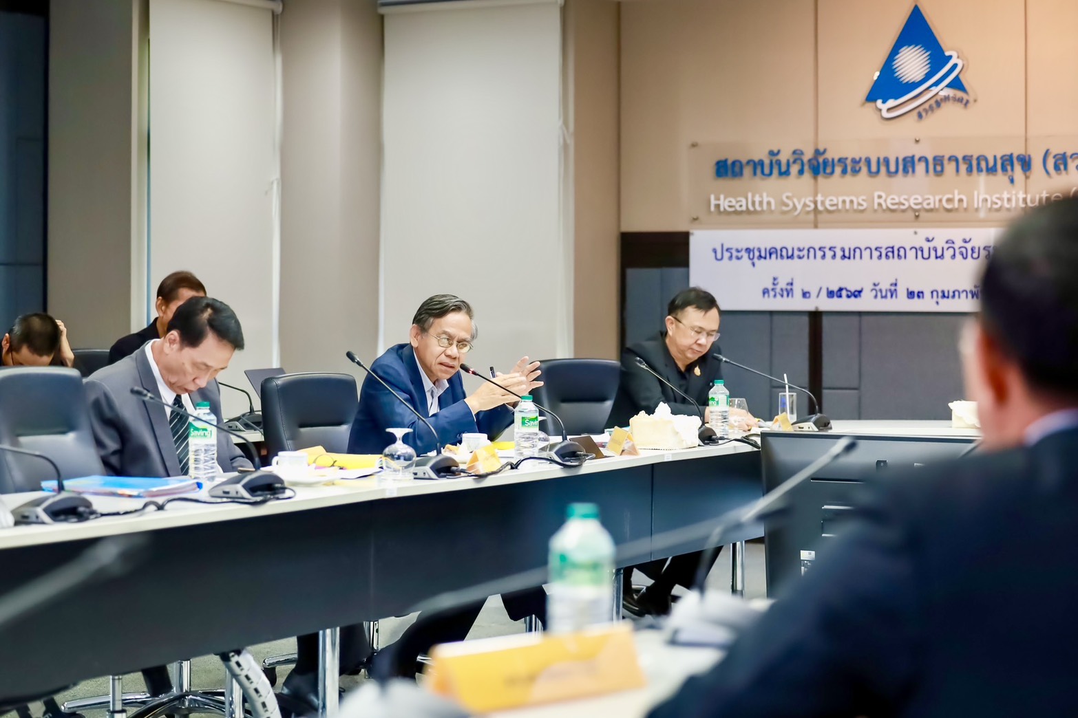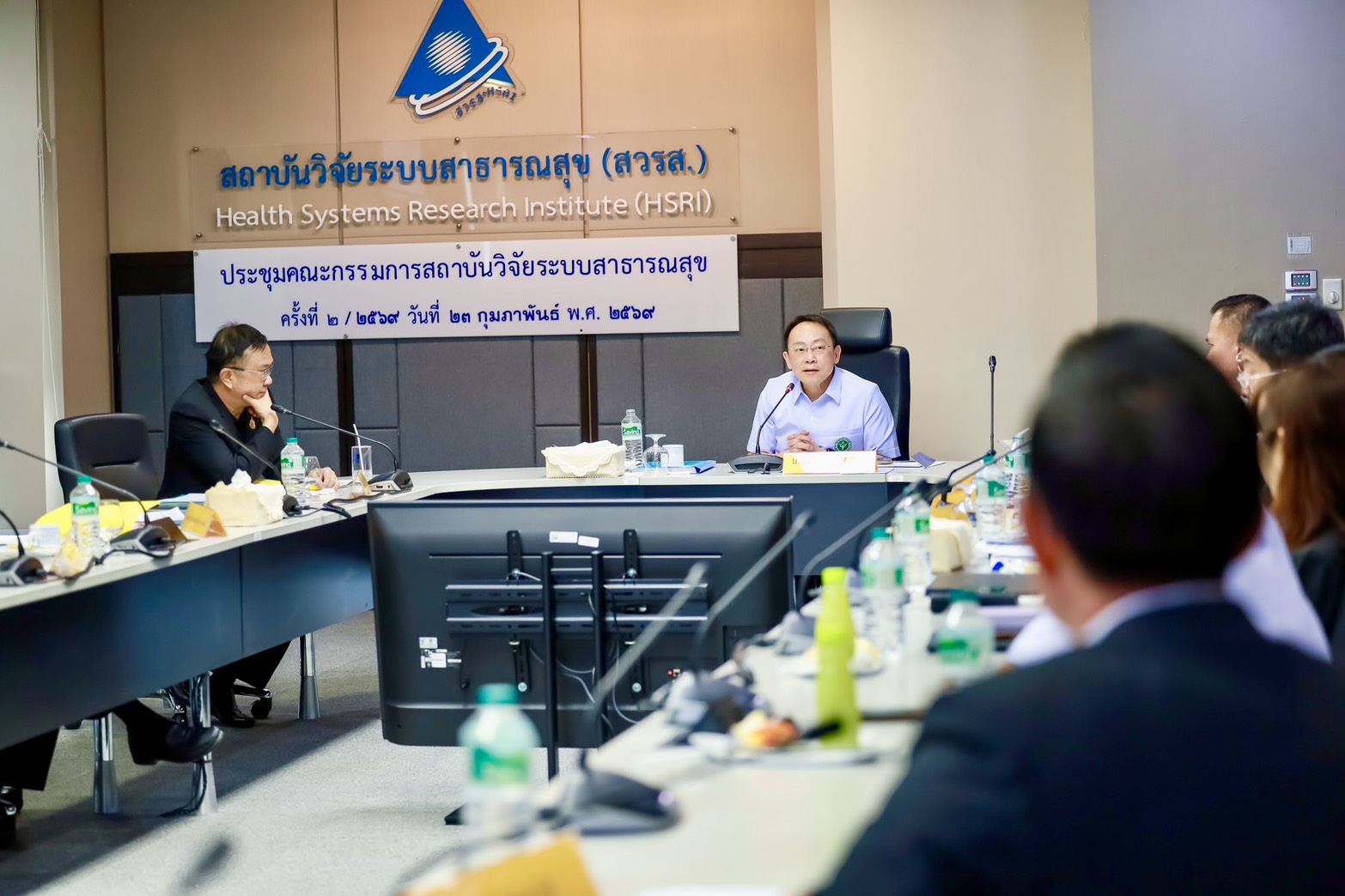 การประชุมคณะกรรมการสถาบันวิจัยระบบสาธารณสุข ครั้งที่ 2/2569 มี นพ.สมฤกษ์ จึงสมาน ปลัดกระทรวงสาธารณสุข เป็นประธานฯ และ นพ.ศุภกิจ ศิริลักษณ์ ผู้อำนวยการสถาบันวิจัยระบบสาธารณสุข กรรมการเเละเลขานุการ พร้อมด้วยกรรมการจากผู้เเทนกระทรวง เเละผู้ทรงคุณวุฒิด้านต่างๆ ร่วมประชุม เมื่อวันที่ 23 ก.พ. 2569 ณ ห้องประชุมสุปัญญา สถาบันวิจัยระบบสาธารณสุข ชั้น 4 อาคารสุขภาพแห่งชาติ