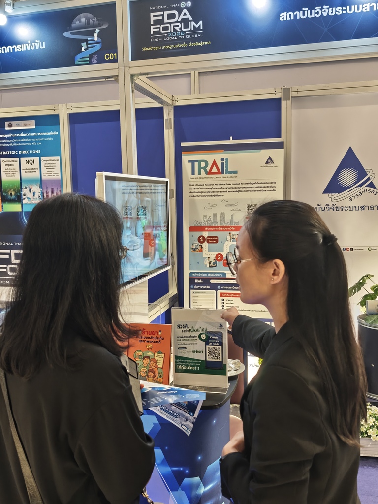 ทั้งนี้ สวรส. ได้รับเกียรติจาก นพ.เอกชัย เพียรศรีวัชรา รองปลัดกระทรวงสาธารณสุข ภญ.สุภัทรา บุญเสริม เลขาธิการคณะกรรมการอาหารและยา พร้อมคณะผู้บริหารฯ ในการเดินเยี่ยมชมบูธนิทรรศการและผู้ที่สนใจอย่างต่อเนื่อง ณ Zone C03 “วิจัยสร้างฐาน” โดยงานจัดขึ้นระหว่างวันที่ 25– 27 กุมภาพันธ์ 2569 ณ ชั้น 4 ศูนย์ประชุมวายุภักษ์ โรงแรมเซ็นทารา ไลฟ์ ศูนย์ราชการและคอนเวนชันเซ็นเตอร์ แจ้งวัฒนะ กรุงเทพมหานคร