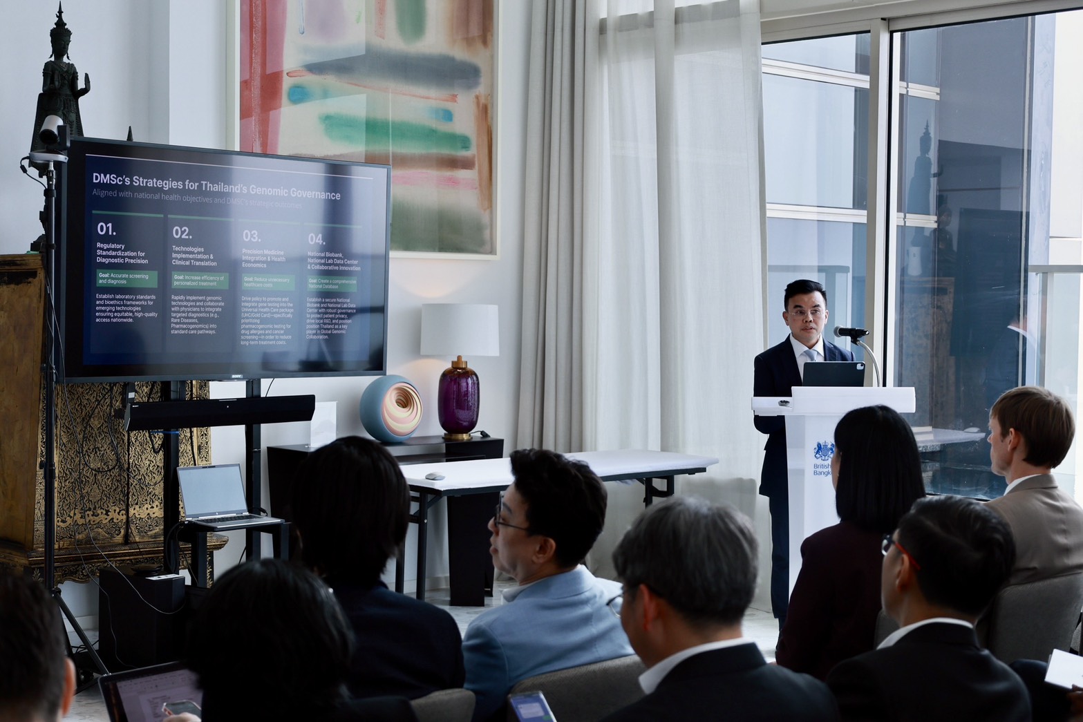 สถานเอกอัครราชทูตอังกฤษ กรุงเทพฯ จัดประชุม UK-Thailand Next-Gen Health Conference โดยมีเป้าหมายเพื่อแลกเปลี่ยนความก้าวหน้าด้านการดูแลสุขภาพและชีววิทยาศาสตร์ โดยเฉพาะด้านการแพทย์จีโนมิกส์ (Genomics) การผลิตเซลล์และยีน (Cell and Gene Manufacturing) AI และการแพทย์แม่นยำ (Precision Medicine) พร้อมสานต่อความร่วมมือระหว่างสหราชอาณาจักรและประเทศไทย โดยมีผู้ทรงคุณวุฒิและผู้เชี่ยวชาญจากทั้งสองประเทศร่วมแลกเปลี่ยนในการประชุมฯ อาทิ กรมวิทยาศาสตร์การแพทย์ กระทรวงสาธารณสุข สถาบันวิจัยระบบสาธารณสุข (สวรส.) นักวิจัย/นักวิชาการจากสถาบันการศึกษาในประเทศไทย ผู้เชี่ยวชาญจากบริษัทชั้นนำของสหราชอาณาจักร ได้แก่ Oxford Nanopore Technologies, Lifebit, AstraZeneca, GSK และ Touchlight เมื่อวันที่ 25 ก.พ. 2569 ณ บ้านพักเอกอัครราชทูตอังกฤษ (Four Seasons Private Residences)