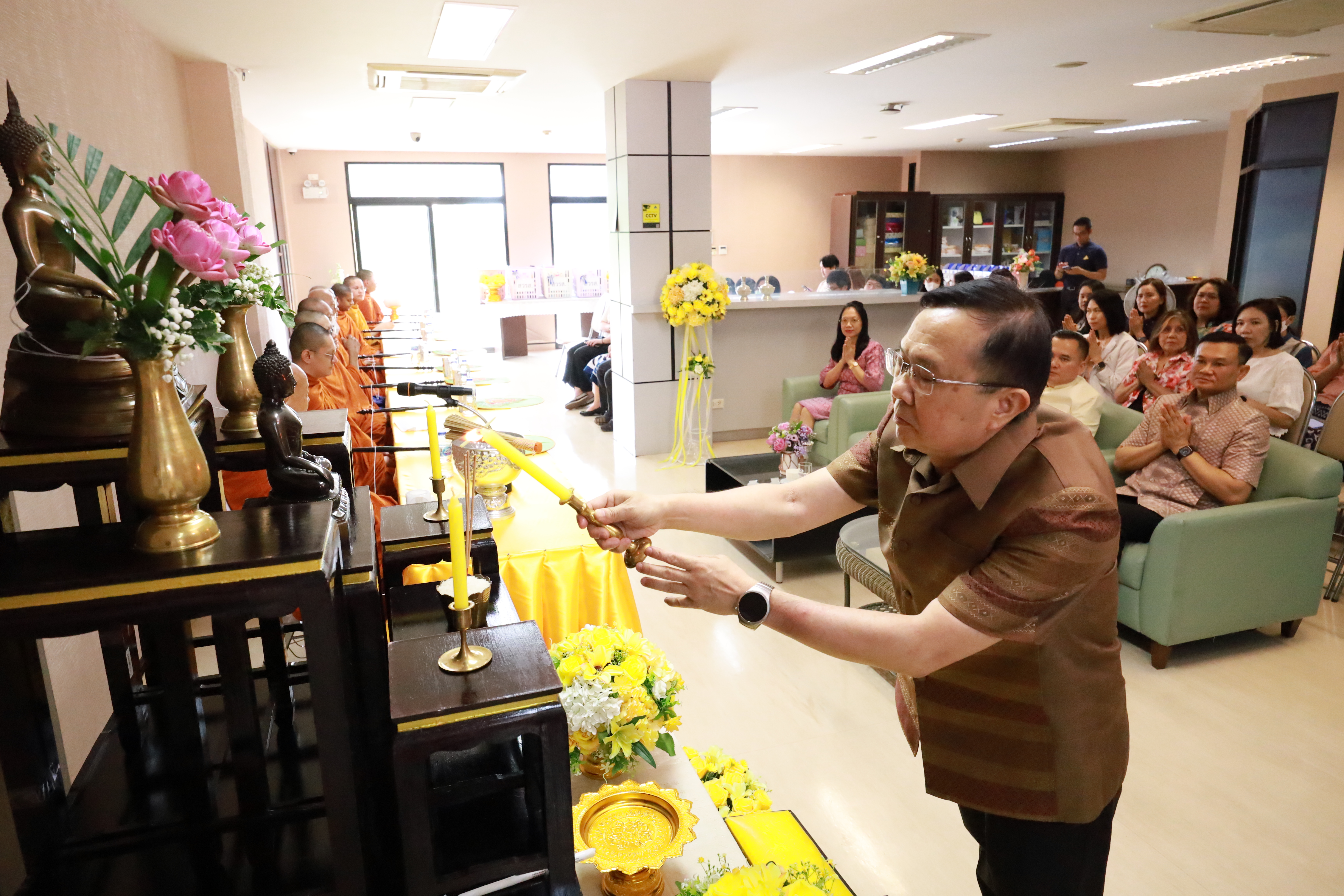 กิจกรรมเริ่มต้นในช่วงเช้าด้วยพิธีสงฆ์และการเจริญพระพุทธมนต์ โดย นพ.ศุภกิจ ศิริลักษณ์ ผอ.สวรส. ประธานในพิธีได้จุดธูปเทียนบูชาพระรัตนตรัย พร้อมร่วมถวายเครื่องจตุปัจจัยไทยธรรมแด่พระสงฆ์ เพื่อเสริมสร้างพลังใจและสิริมงคลในการทำงานให้แก่บุคลากรทุกคน