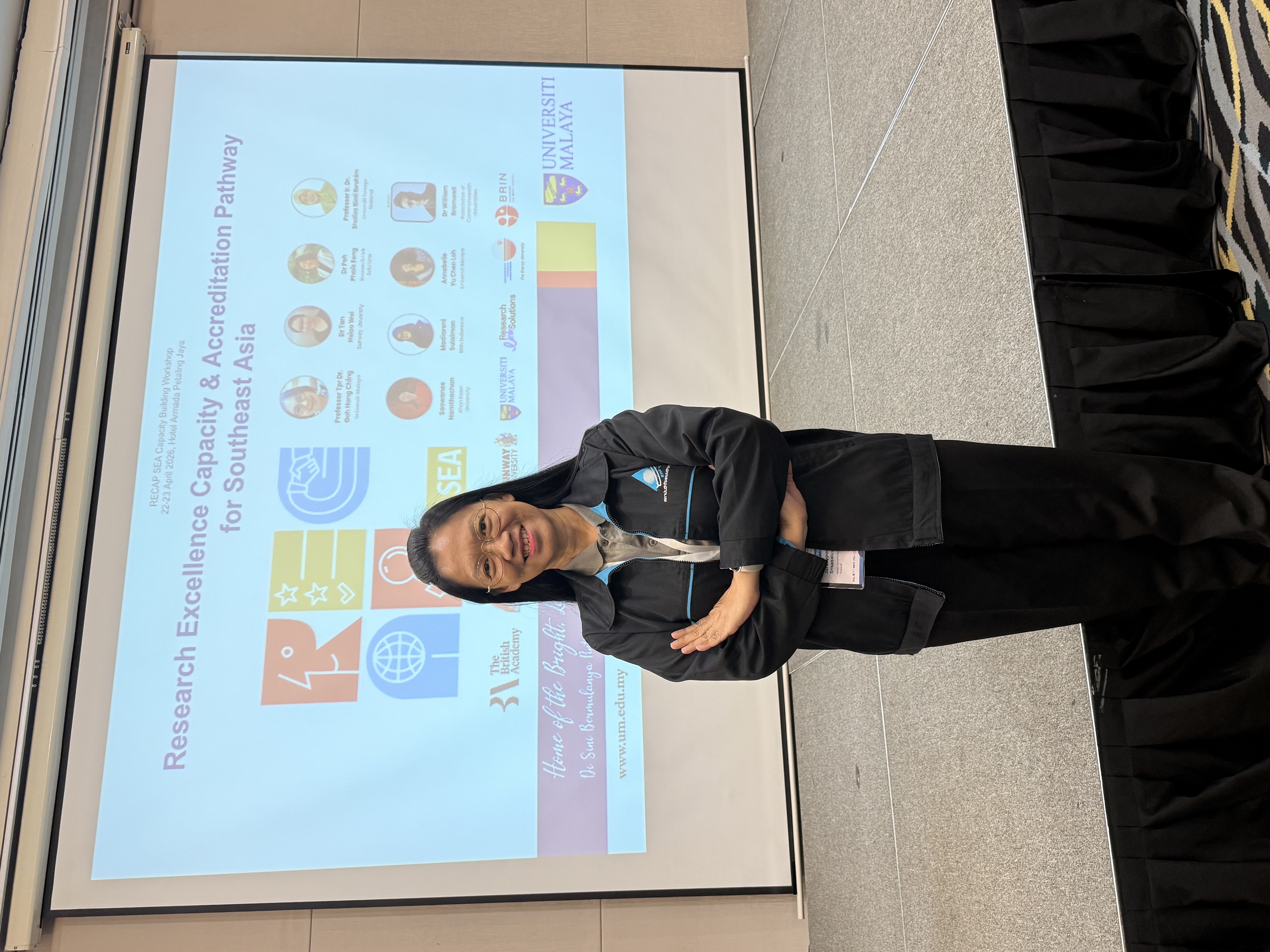 วันที่ 22-23 เมษายน 2569 ผศ.ดร.จรวยพร ศรีศศลักษณ์ รองผู้อำนวยการสถาบันวิจัยระบบสาธารณสุข ได้เป็นตัวแทนประเทศไทยเข้าร่วมการประชุม Research Excellence Capacity & Accreditation Pathway Southeast Asia (RECAP SEA) Capacity-Building Workshop on Research Management and Administration จัดขึ้นโดย Universiti Malaya ณ กรุงกัวลาลัมเปอร์ สหพันธรัฐมาเลเซีย ด้วยการสนับสนุนจาก The British Academy สถาบันด้านการพัฒนานักวิชาการและองค์ความรู้แห่งสหราชอาณาจักร ด้านมนุษยศาสตร์และสังคมศาสตร์ โดยการประชุมประกอบด้วยผู้แทนจาก 3 ประเทศ รวม 45 คน (มาเลเซีย อินโดนีเซีย และประเทศไทย) มีวัตถุประสงค์เพื่อเสริมสร้างศักยภาพด้านการบริหารจัดการงานวิจัยแก่ประเทศในภูมิภาคเอเชียตะวันออกเฉียงใต้ เพื่อความร่วมมือและการพัฒนาการจัดการงานวิจัยในสาขาต่างๆ