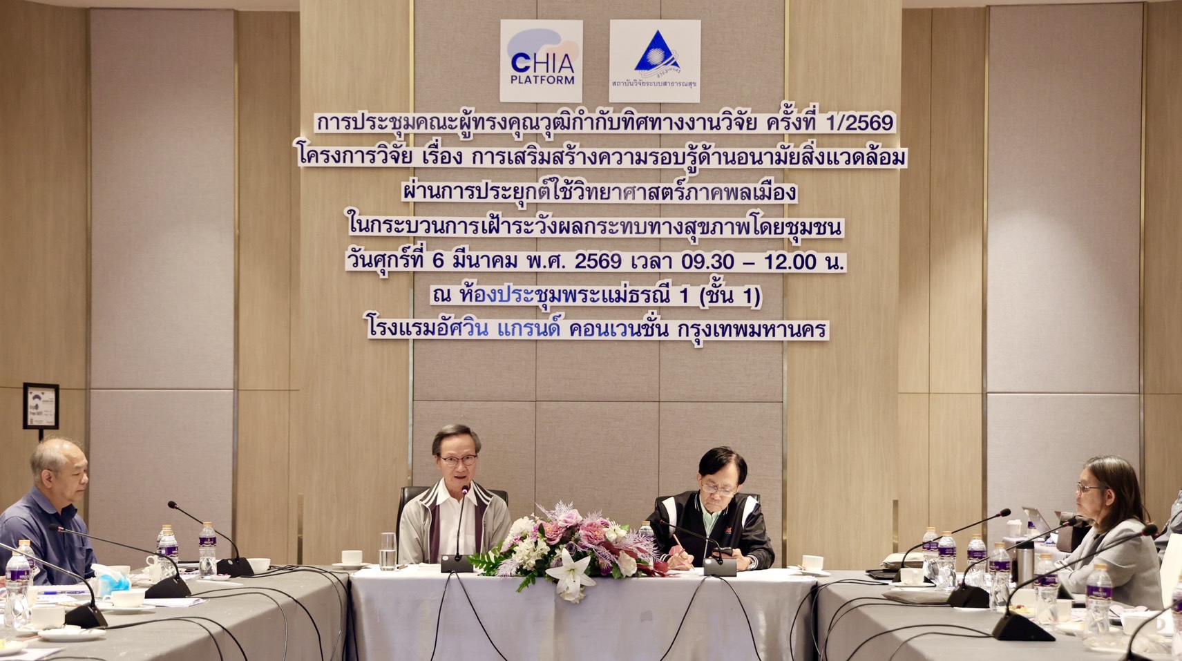 นางสาวสมพร เพ็งค่ำ สถาบัน CHIA หัวหน้าโครงการวิจัยฯ กล่าวในการประชุมคณะผู้ทรงคุณวุฒิกำกับทิศทางงานวิจัยฯ ครั้งที่ 1/2569 เมื่อวันที่ 6 มี.ค. 2569 ตอนหนึ่งว่า การสร้างระบบหรือกลไกการเฝ้าระวังโดยชุมชนที่ยั่งยืน ต้องอาศัยศักยภาพของแกนนำที่เป็นคนในชุมชน โดยต้องเป็นคนที่เข้าใจระบบและกลไกการป้องกันในชุมชน งานวิจัยจึงเน้นที่การสร้างความรอบรู้ด้าน EHL เพื่อให้รู้ว่ามลพิษคืออะไร แหล่งกำเนิดมาจากที่ใด เส้นทางการเคลื่อนที่ของมลพิษเป็นอย่างไร และจะมีผลกระทบอย่างไรต่อชุมชน รวมทั้งที่สำคัญคือจะทำอย่างไรเพื่อป้องกันไม่ให้ป่วยจากปัจจัยทางด้านสิ่งแวดล้อม โดยคณะผู้ทรงคุณวุฒิฯ ได้แนะนำถึงการพัฒนางานวิจัย โดยเฉพาะในเรื่องการจัดการคุณภาพ มาตรฐานห้องปฏิบัติการ ตลอดจนการเก็บสิ่งส่งตรวจ โดยแกนนำในชุมชนจะต้องมีความรู้และสามารถปฏิบัติได้ตามเกณฑ์มาตรฐาน เพื่อให้ผลลัพธ์เป็นที่ยอมรับของทุกฝ่าย รวมถึงลดข้อโต้แย้งของข้อมูลว่าประชาชนเก็บสิ่งส่งตรวจได้ถูกต้องหรือไม่ ซึ่งข้อมูลที่ถูกต้องและการดำเนินการอย่างมีมาตรฐาน จะนำไปสู่การใช้เป็นข้อมูลสำคัญในการจัดการป้องกันปัญหาสุขภาพของคนในชุมชน