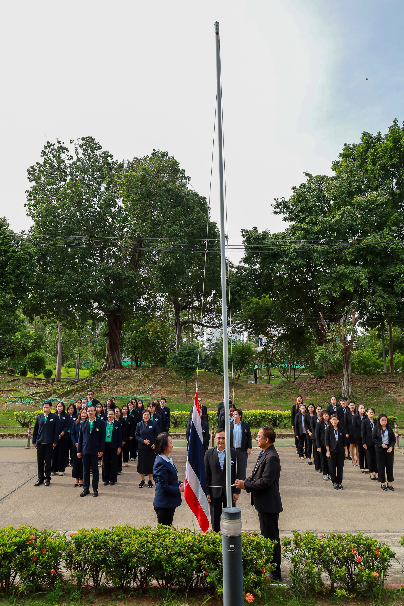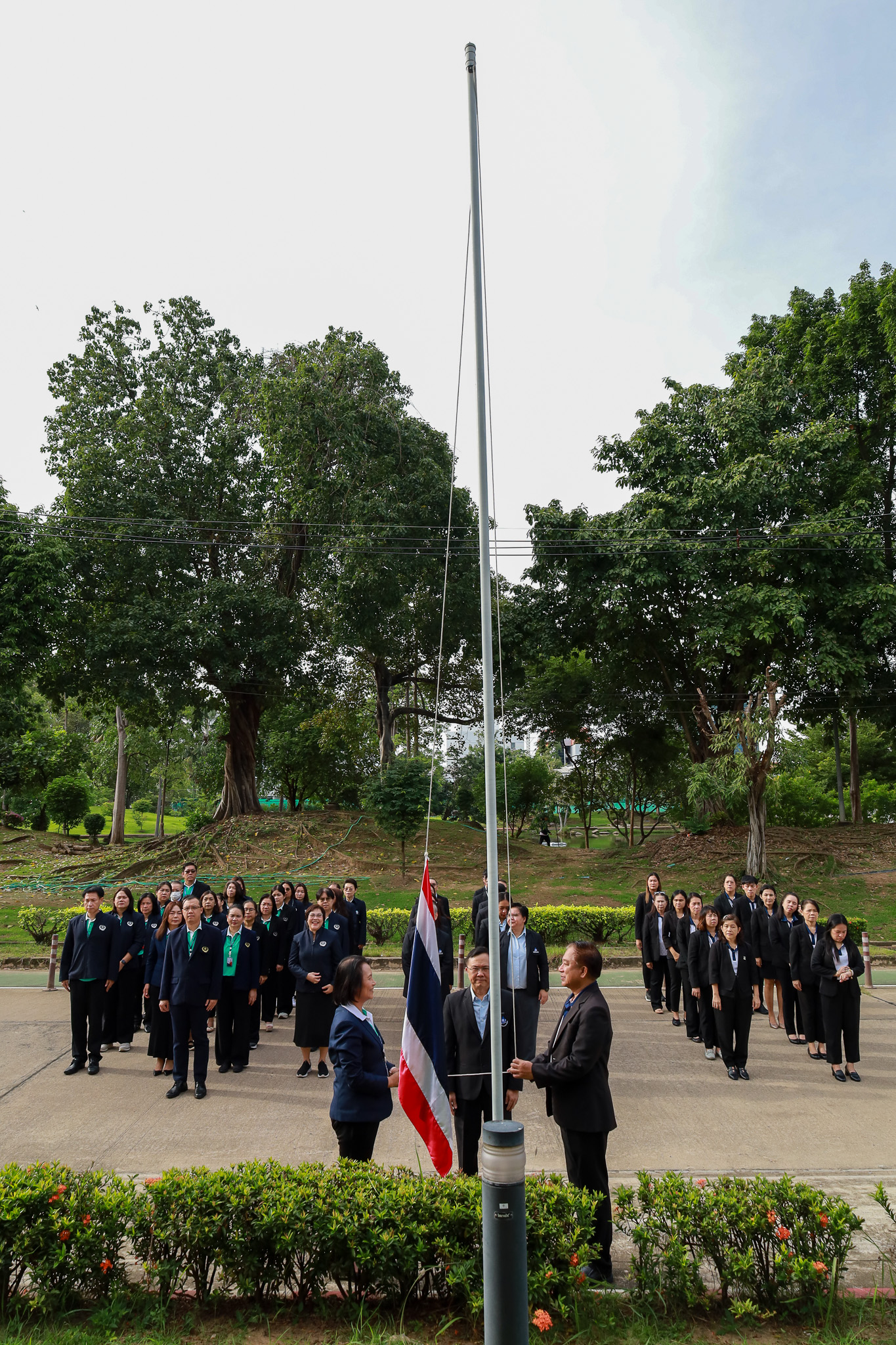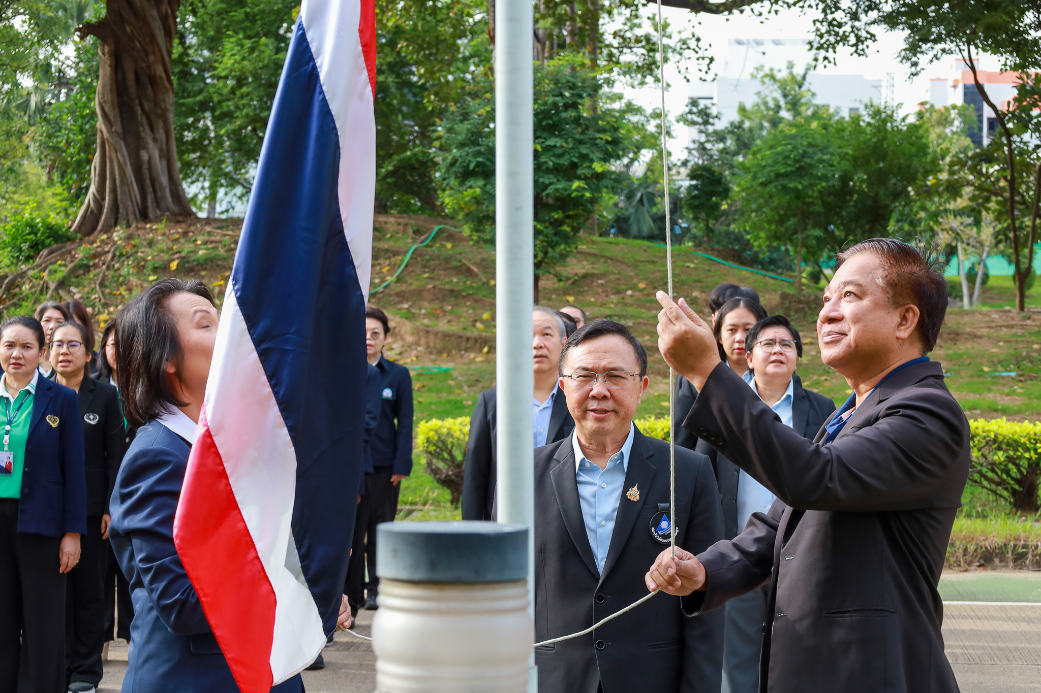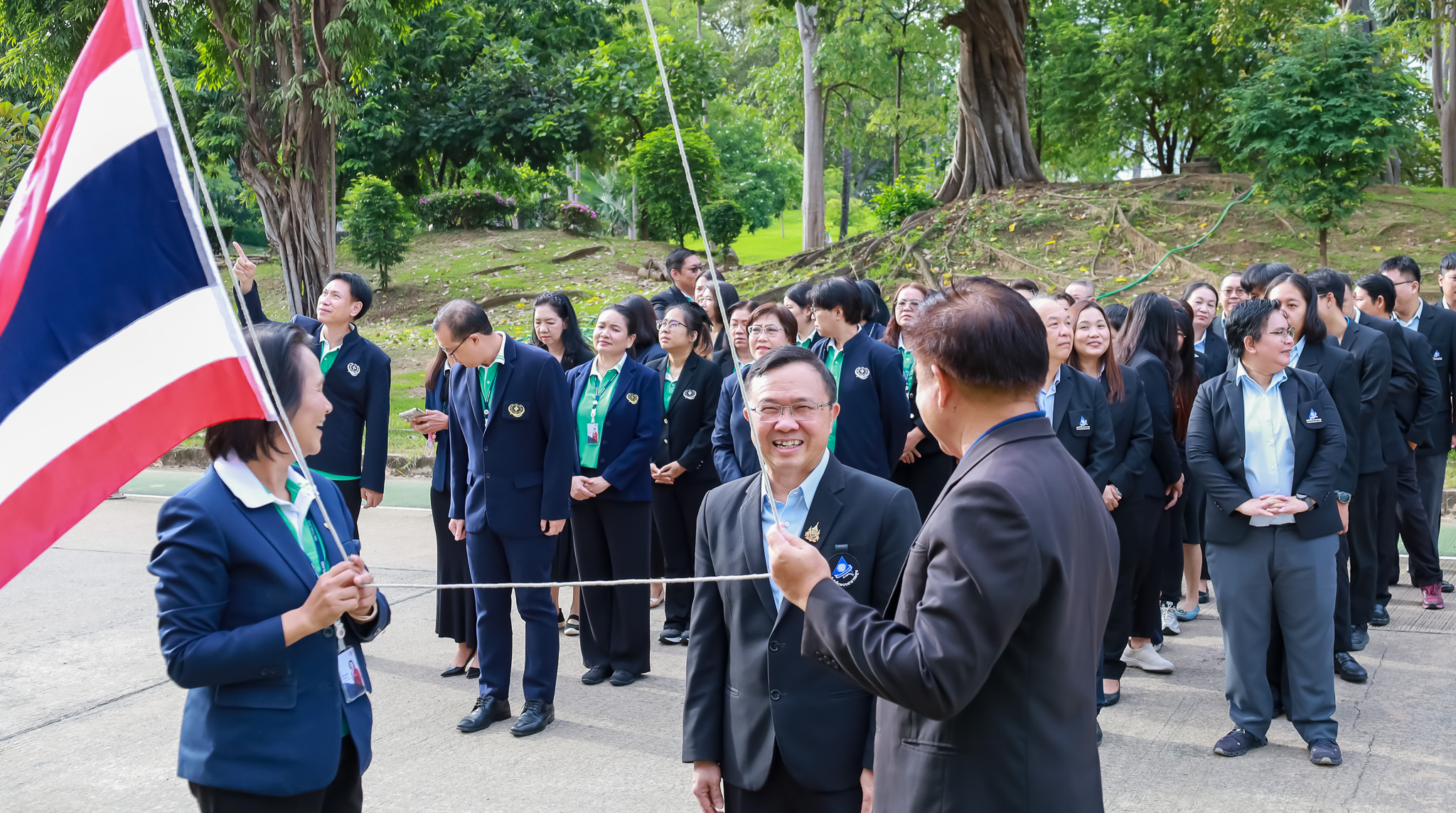 วันจันทร์ที่ 29 กันยายน 2568 เวลา 8.00 น. สถาบันวิจัยระบบสาธารณสุข (สวรส.) นำโดย นายแพทย์ศุภกิจ ศิริลักษณ์ ผู้อำนวยการสถาบันฯ พร้อมผู้บริหารและพนักงาน สวรส. ได้เข้าร่วมกิจกรรมเนื่องในวันพระราชทานธงชาติไทย (Thai National Flag Day) ณ บริเวณเสาธงหน้าอาคารสุขภาพแห่งชาติ ร่วมกับผู้บริหารและเจ้าหน้าที่จาก 3 หน่วยงาน ได้แก่ สวรส., สช. และ สรพ.