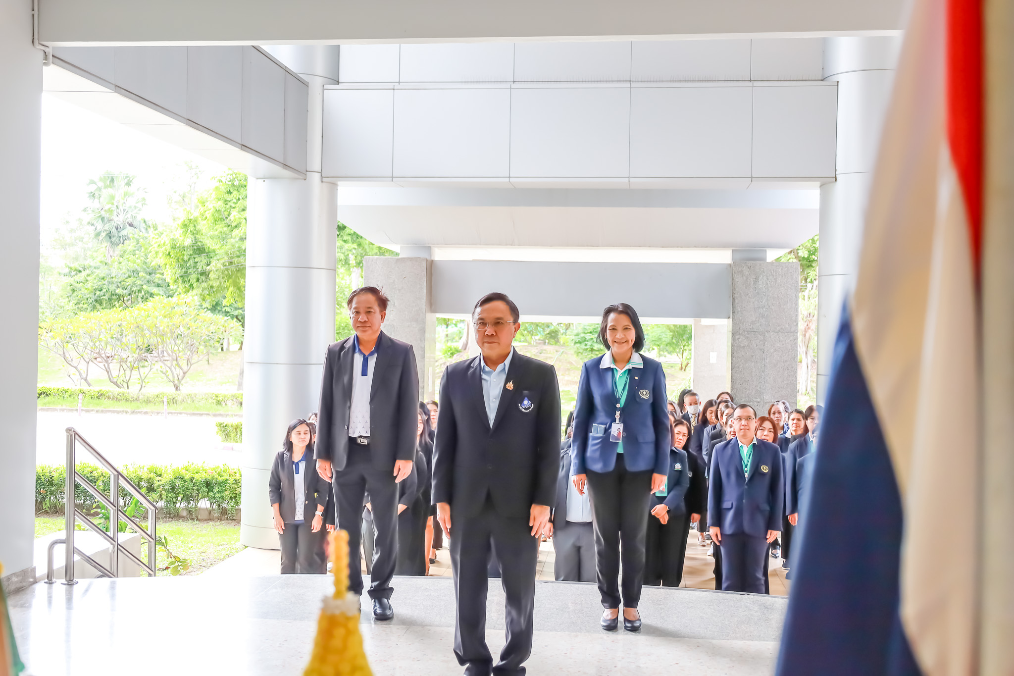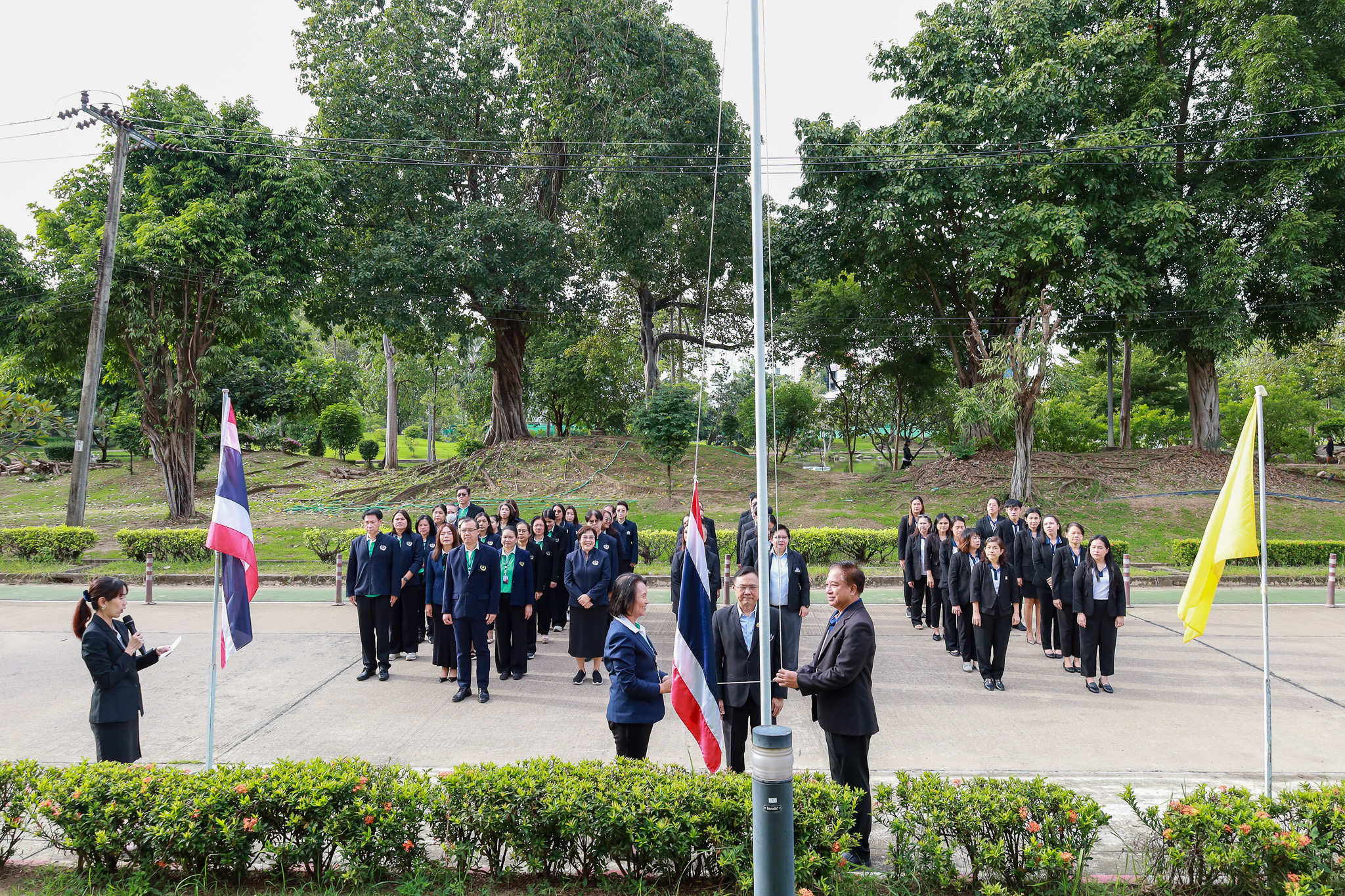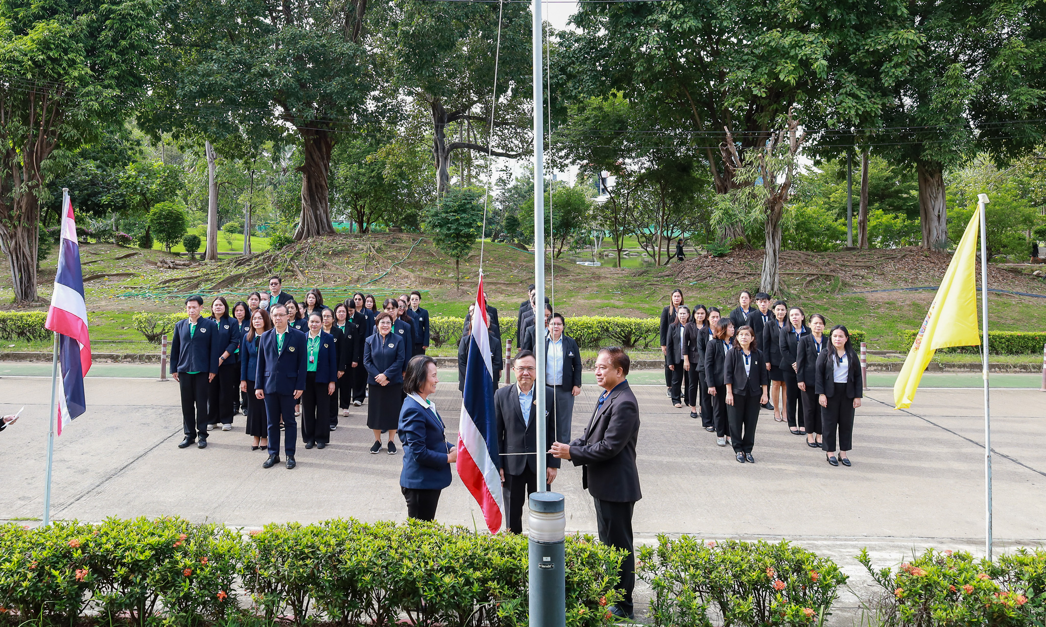 กิจกรรมเริ่มต้นด้วยการถวายความเคารพพระบรมฉายาลักษณ์พระบาทสมเด็จพระเจ้าอยู่หัว และประธานในพิธีได้เปิดกรวยกระทงดอกไม้ จากนั้น นพ.ศุภกิจ ศิริลักษณ์ พร้อมด้วยผู้บริหารและเจ้าหน้าที่ทั้ง 3 หน่วยงาน ได้ร่วมกัน เคารพธงชาติและร้องเพลงชาติไทย โดยพร้อมเพรียงกัน เพื่อแสดงความภาคภูมิใจและน้อมรำลึกถึงพระมหากรุณาธิคุณที่พระบาทสมเด็จพระมงกุฎเกล้าเจ้าอยู่หัว ทรงพระราชทานธงไตรรงค์เป็นธงชาติไทย