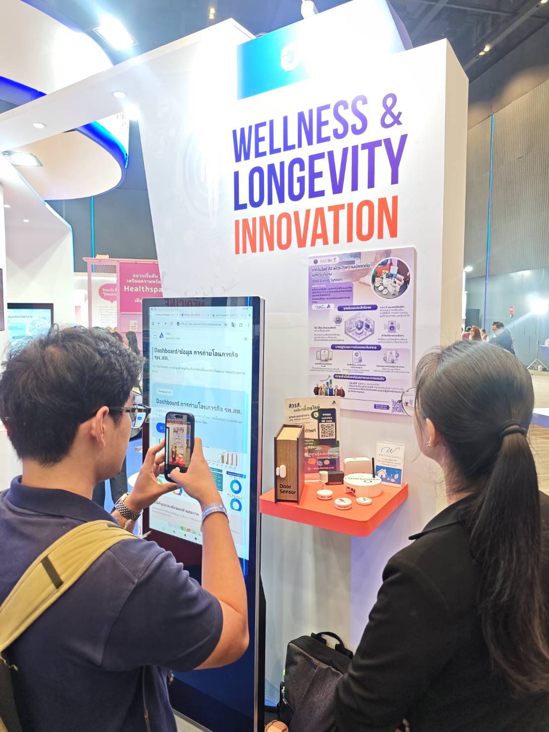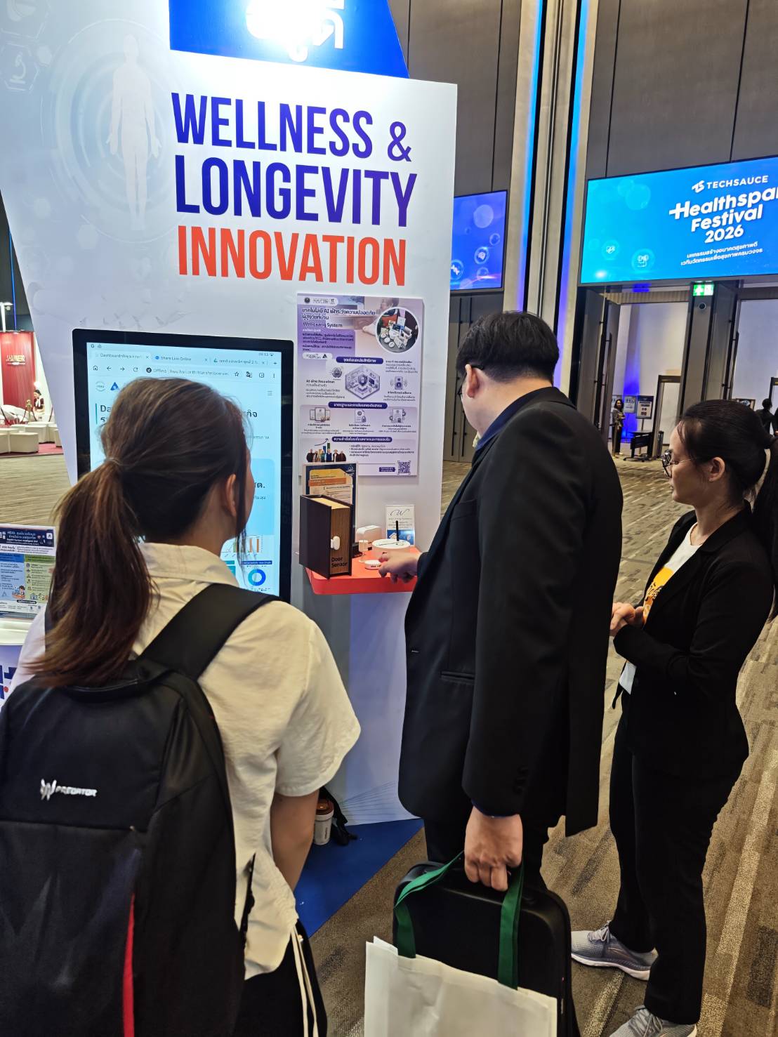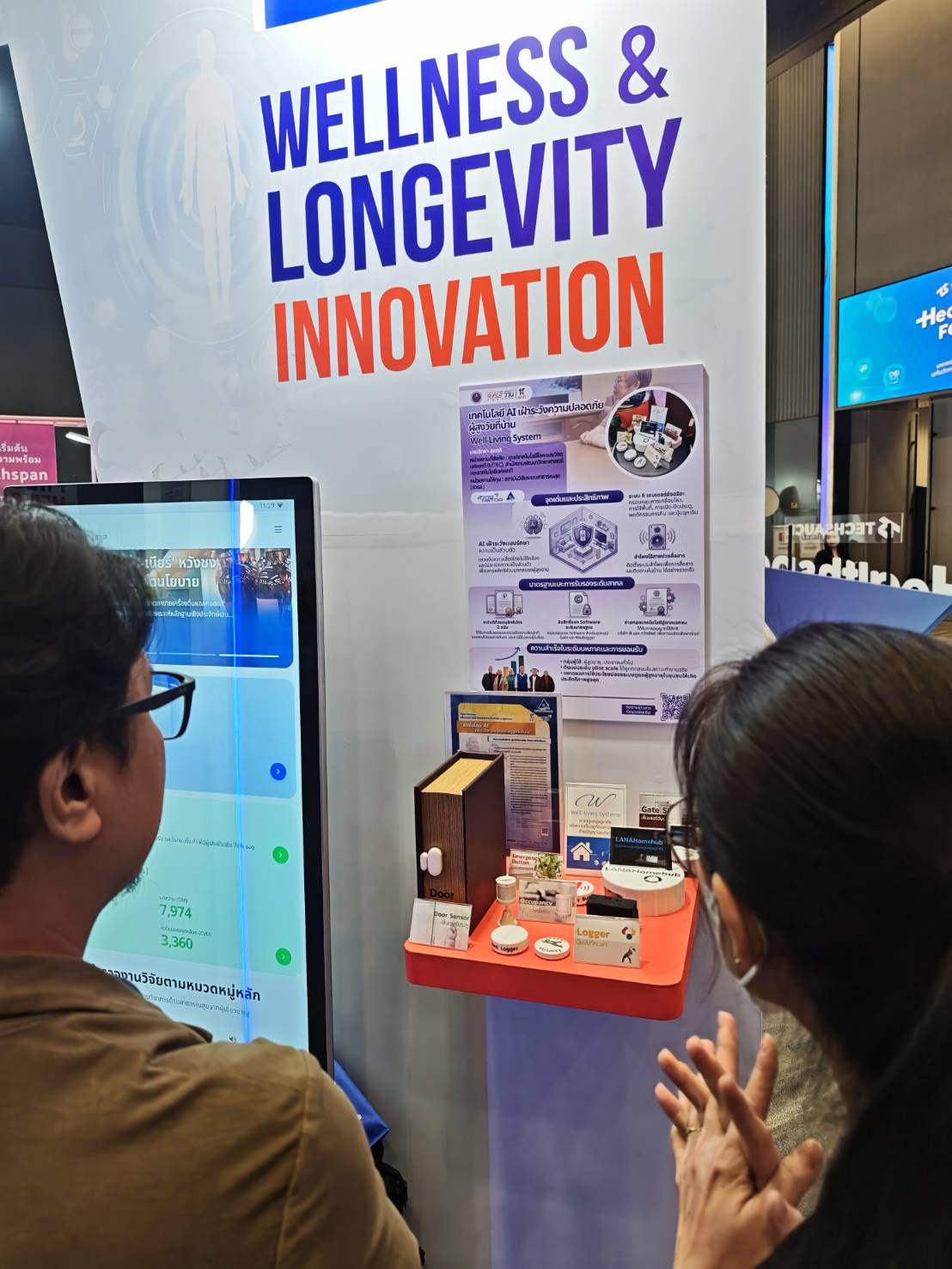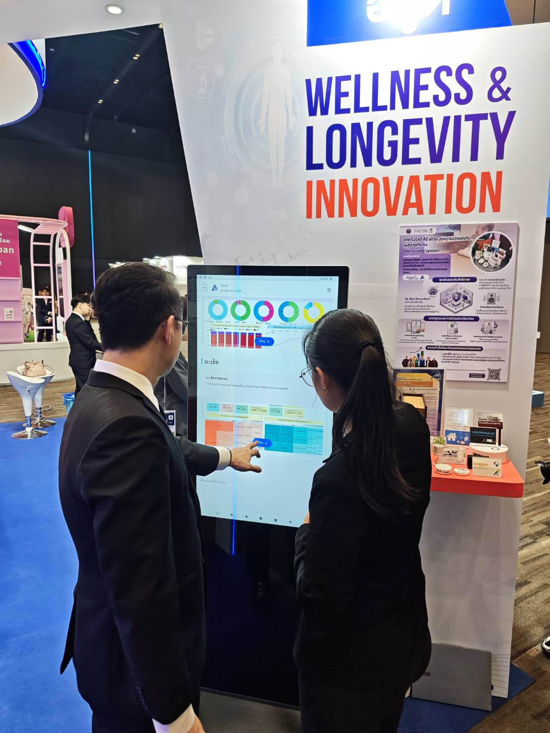 (1) เทคโนโลยี AI เฝ้าระวังความปลอดภัยผู้สูงวัยที่บ้าน (2) HSIU "หน่วยประมวลสถานการณ์ระบบสุขภาพ" (3) ชุดตรวจคัดกรองไตด้วยตนเอง และได้รับเกียรติจาก นายแพทย์เอกชัย เพียรศรีวัชรา รองปลัดกระทรวงสาธารณสุข ในการเดินเยี่ยมชมบูธ