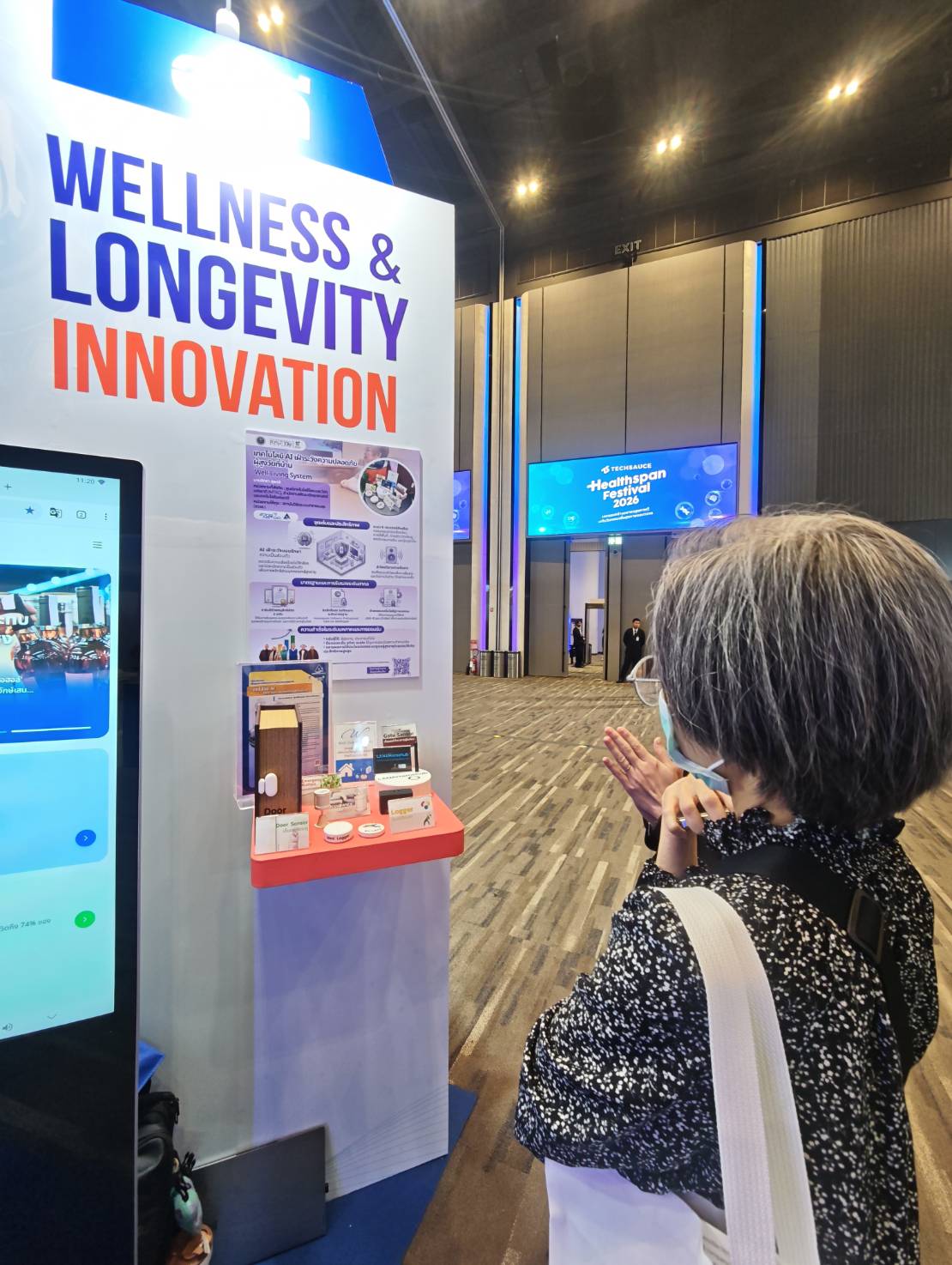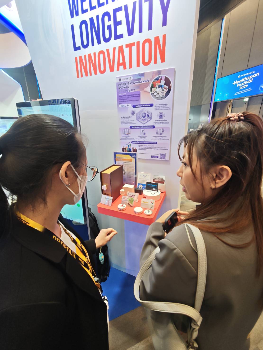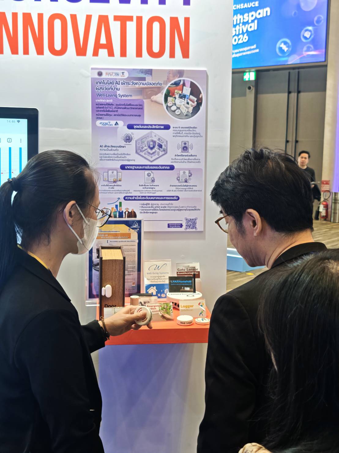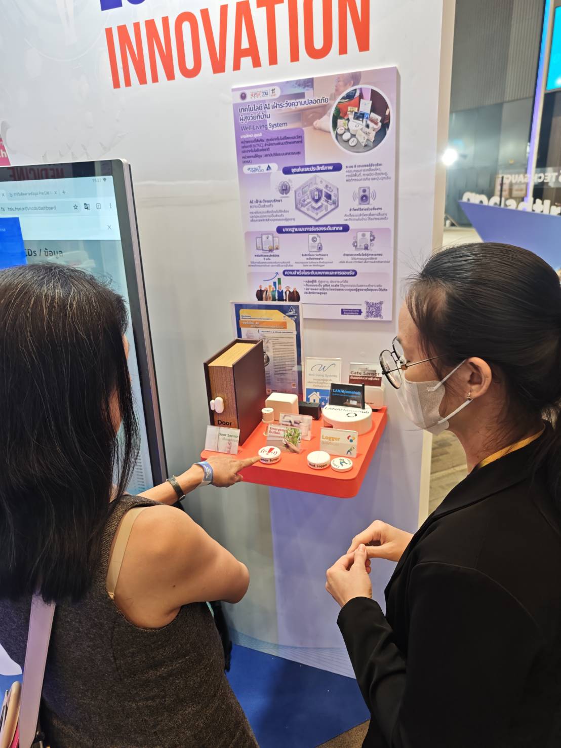 (1) เทคโนโลยี AI เฝ้าระวังความปลอดภัยผู้สูงวัยที่บ้าน (2) HSIU "หน่วยประมวลสถานการณ์ระบบสุขภาพ" (3) ชุดตรวจคัดกรองไตด้วยตนเอง และได้รับเกียรติจาก นายแพทย์เอกชัย เพียรศรีวัชรา รองปลัดกระทรวงสาธารณสุข ในการเดินเยี่ยมชมบูธ