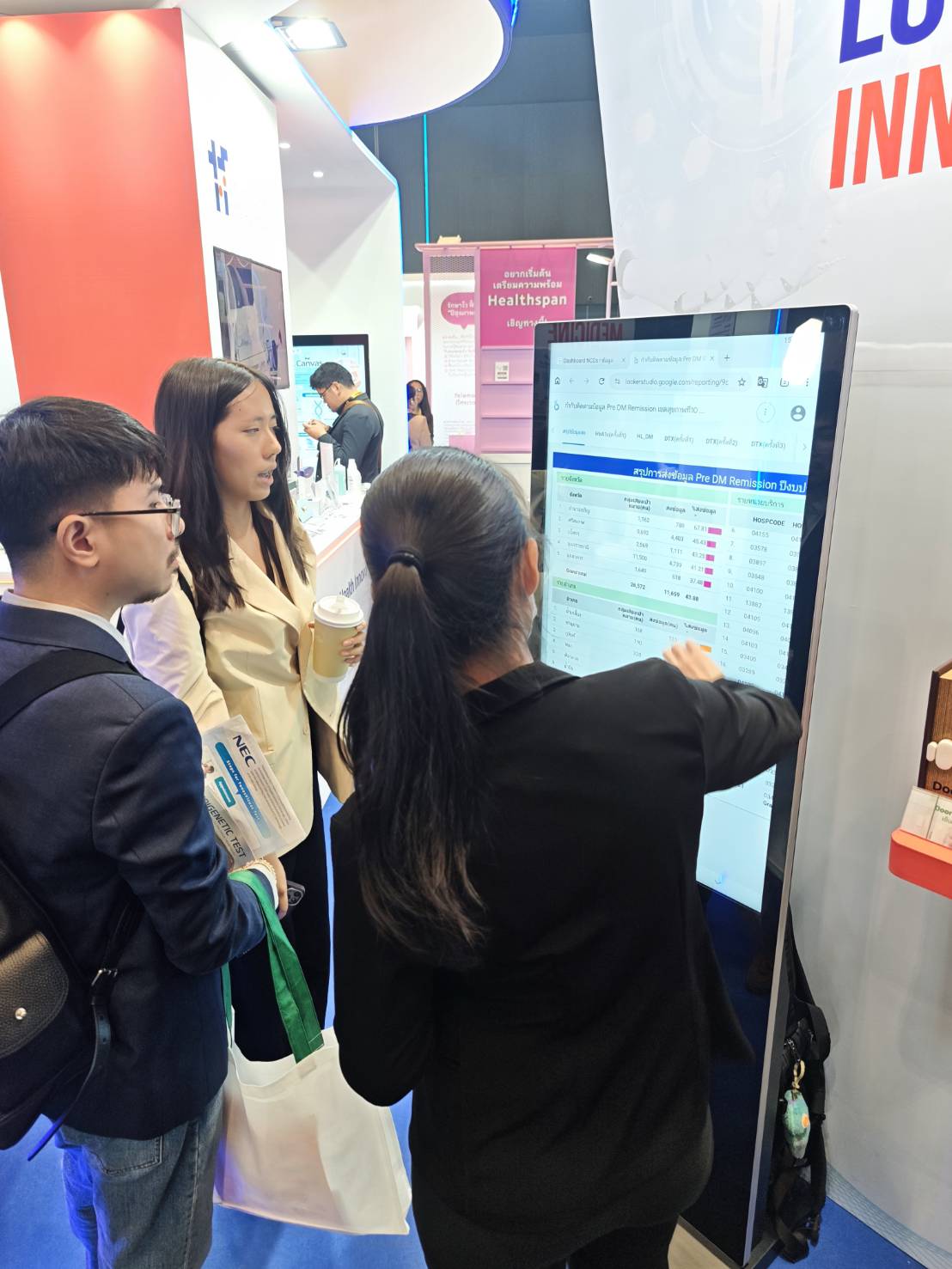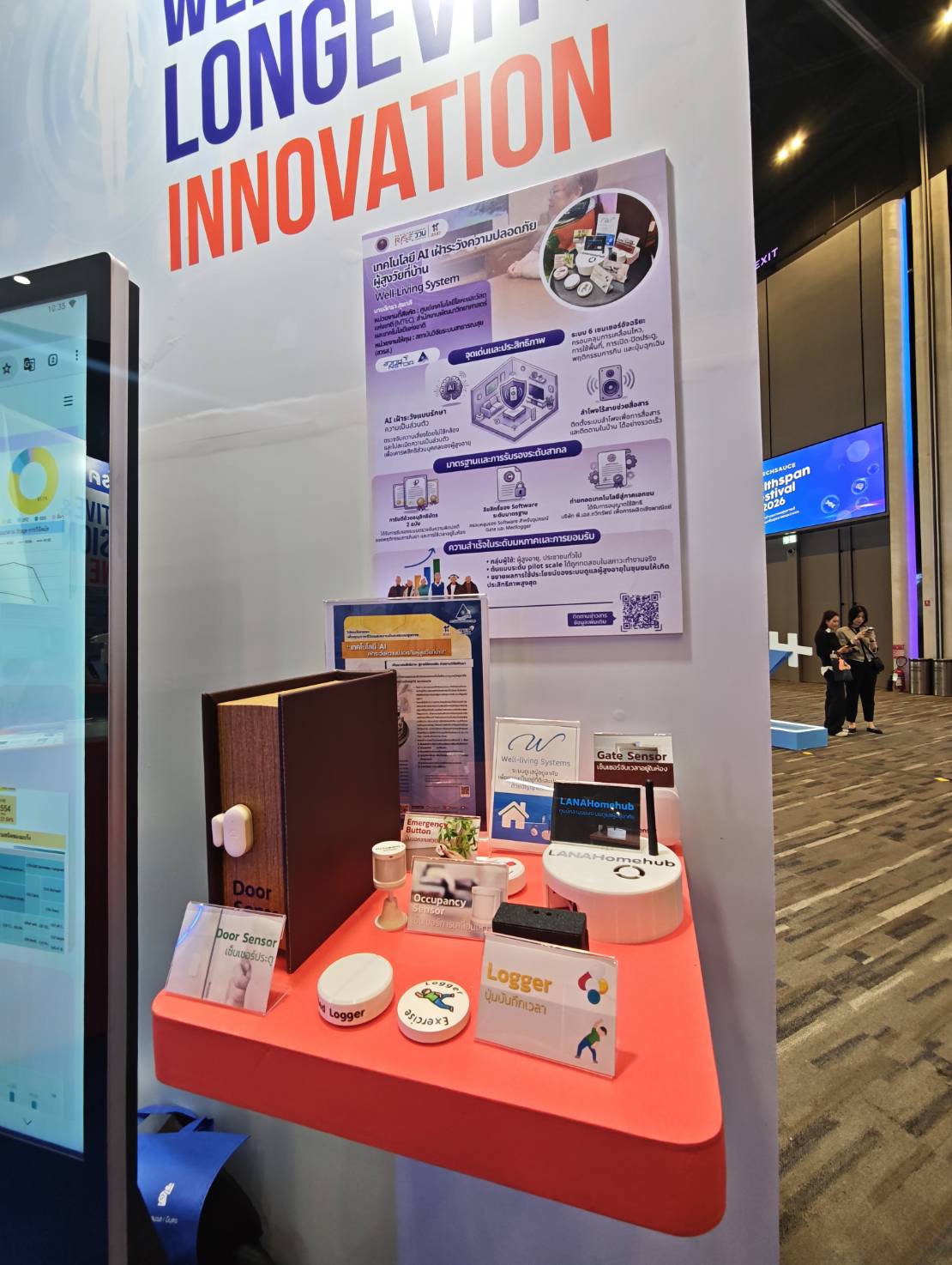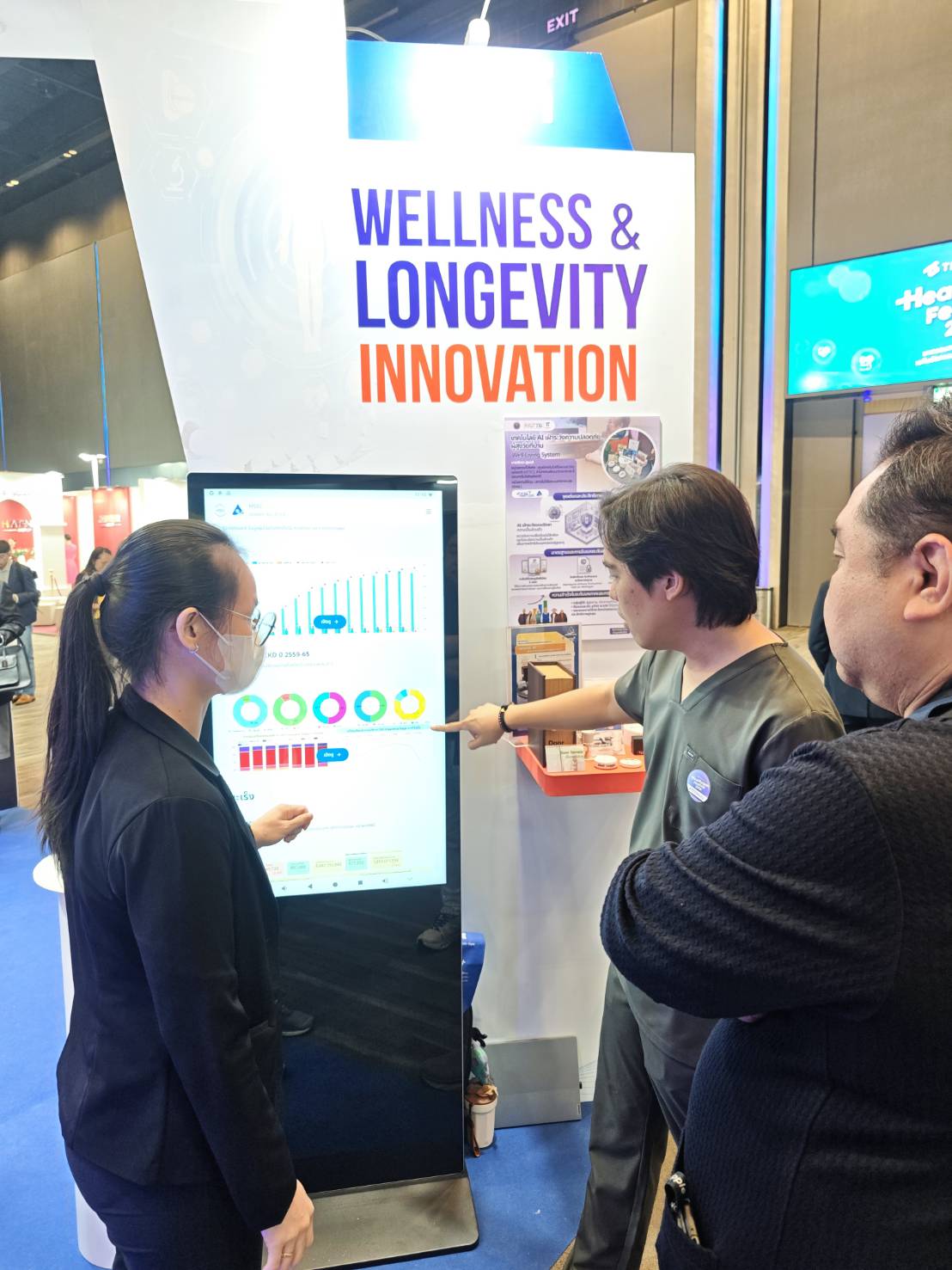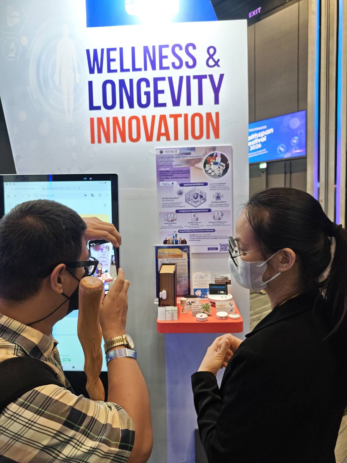 (1) เทคโนโลยี AI เฝ้าระวังความปลอดภัยผู้สูงวัยที่บ้าน (2) HSIU "หน่วยประมวลสถานการณ์ระบบสุขภาพ" (3) ชุดตรวจคัดกรองไตด้วยตนเอง และได้รับเกียรติจาก นายแพทย์เอกชัย เพียรศรีวัชรา รองปลัดกระทรวงสาธารณสุข ในการเดินเยี่ยมชมบูธ